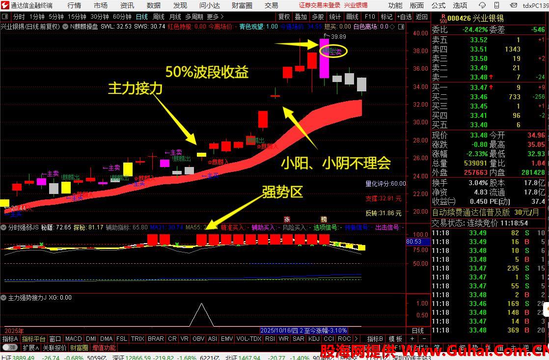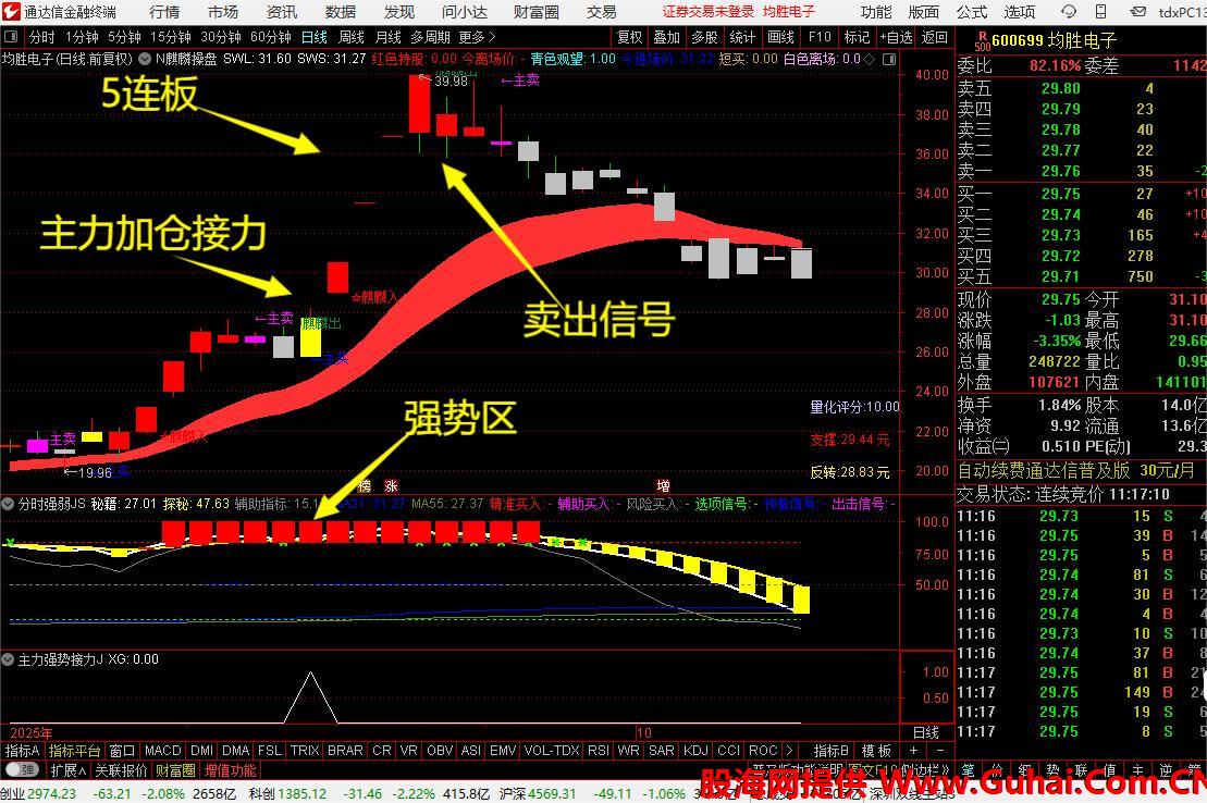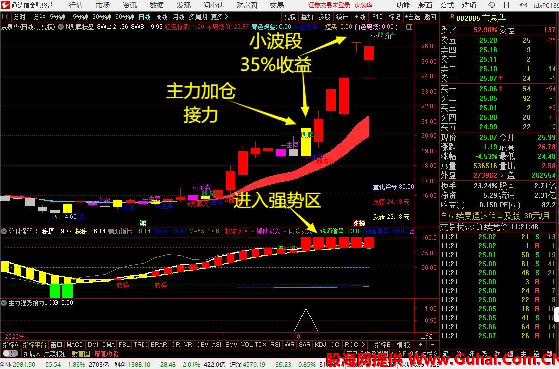 相关简介:【主力强势接力战法】策略的定位及效果:是跟庄买股的精髓战法,采用资金监测、强度跟踪等技术手段精确地捕捉主力加大仓位接力个股,跟随进入,获利卖出,具有波段收益高、确定性强的特点,是强者恒强的经典战法之一。