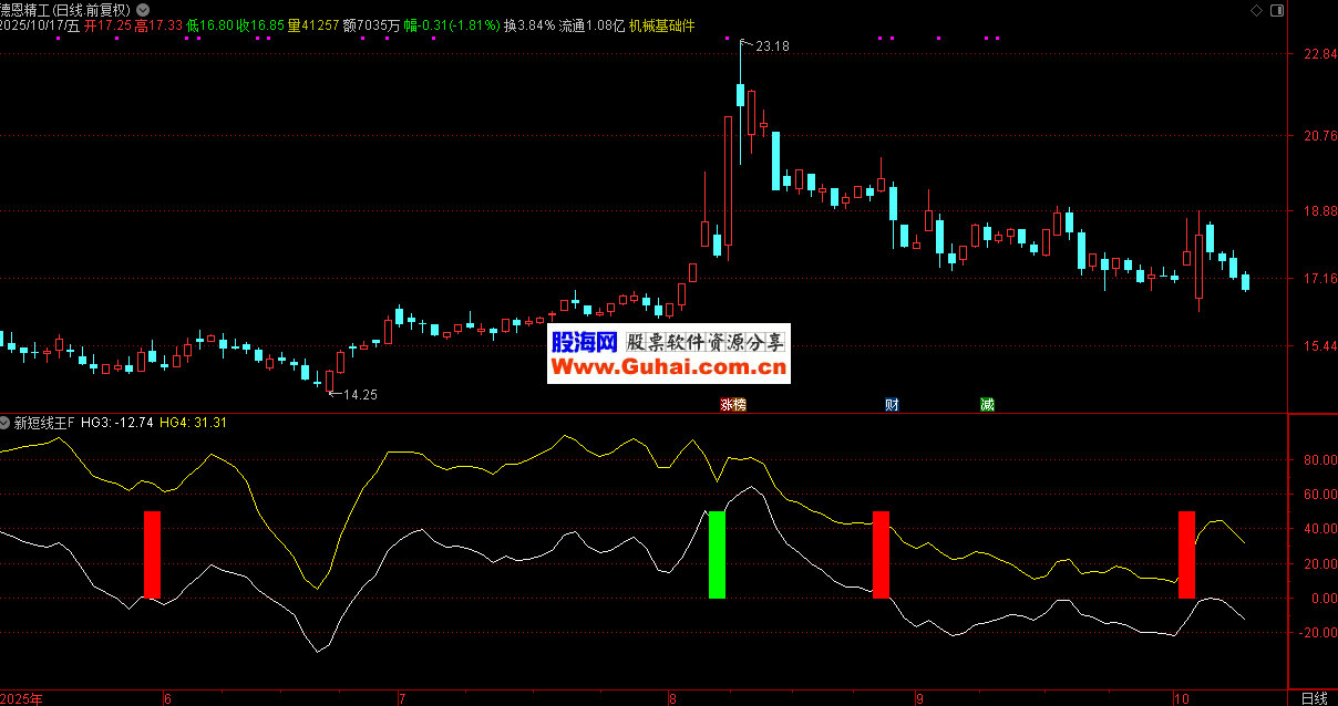 指标通过多维度判断个股超跌反弹机会。当股价短期跌幅较大、动量指标低位且形成金叉时,结合成交量萎缩和均线支撑,发出买入信号;同时监测突破压力位和量价配合情况,确认强势启动点。