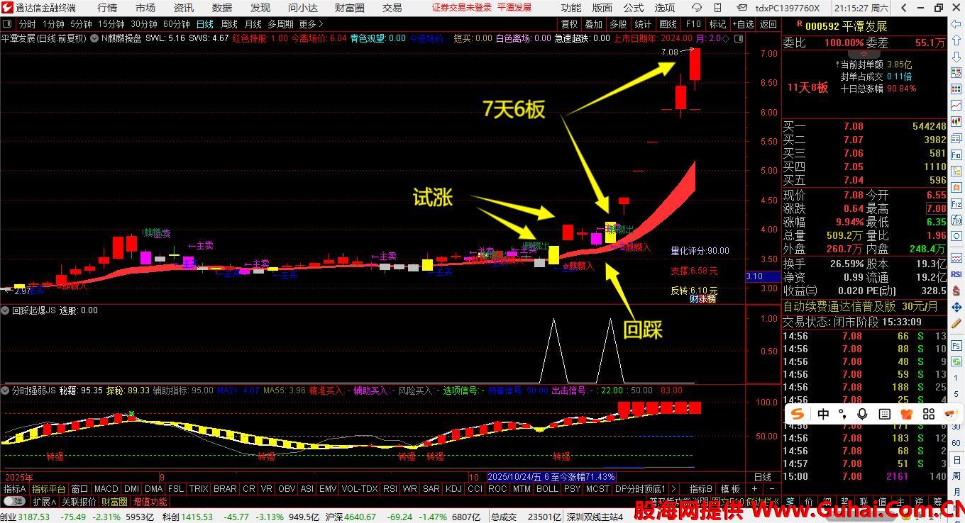 2.上车方式:触发信号当日或次日逢低进入。(可借助内含分时强弱JS指标辅助交易)