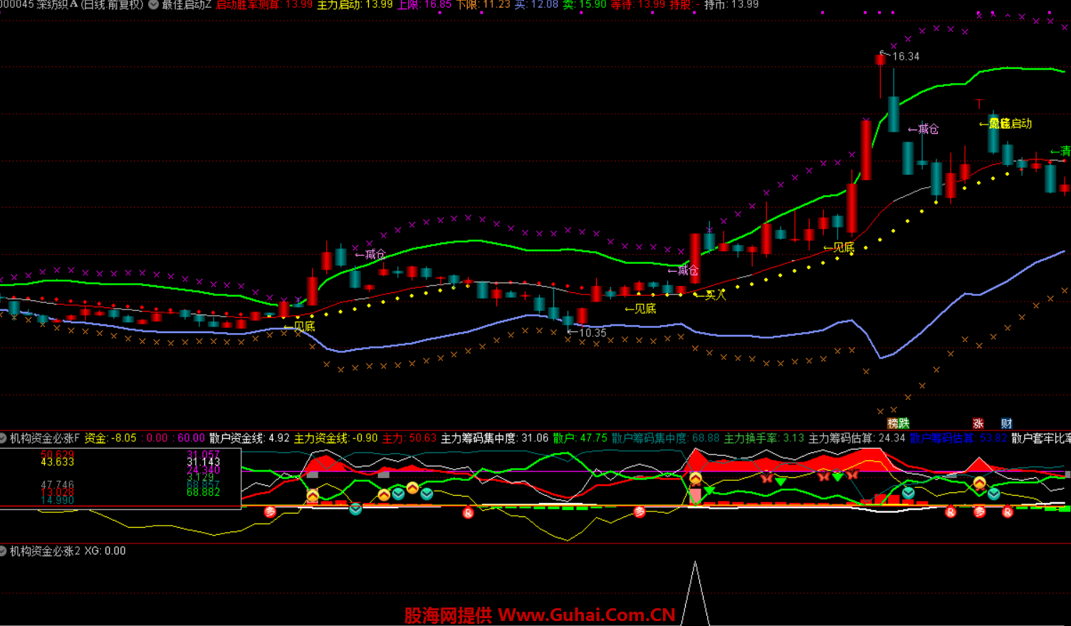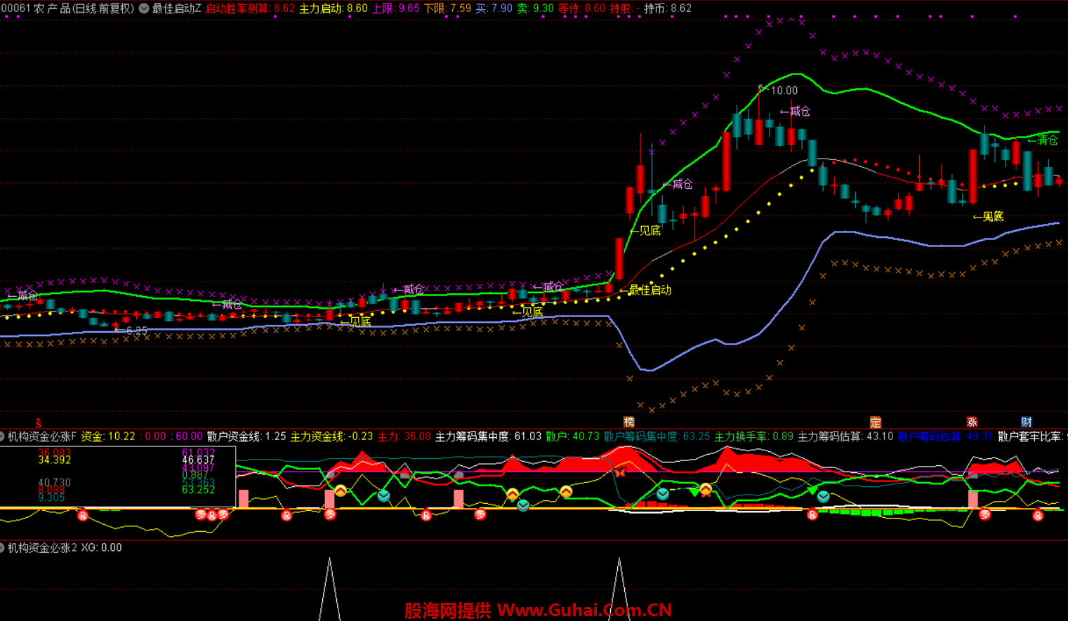 文字提示:减仓、见底、买入、清仓、最佳启动等操作提示