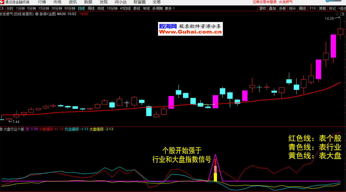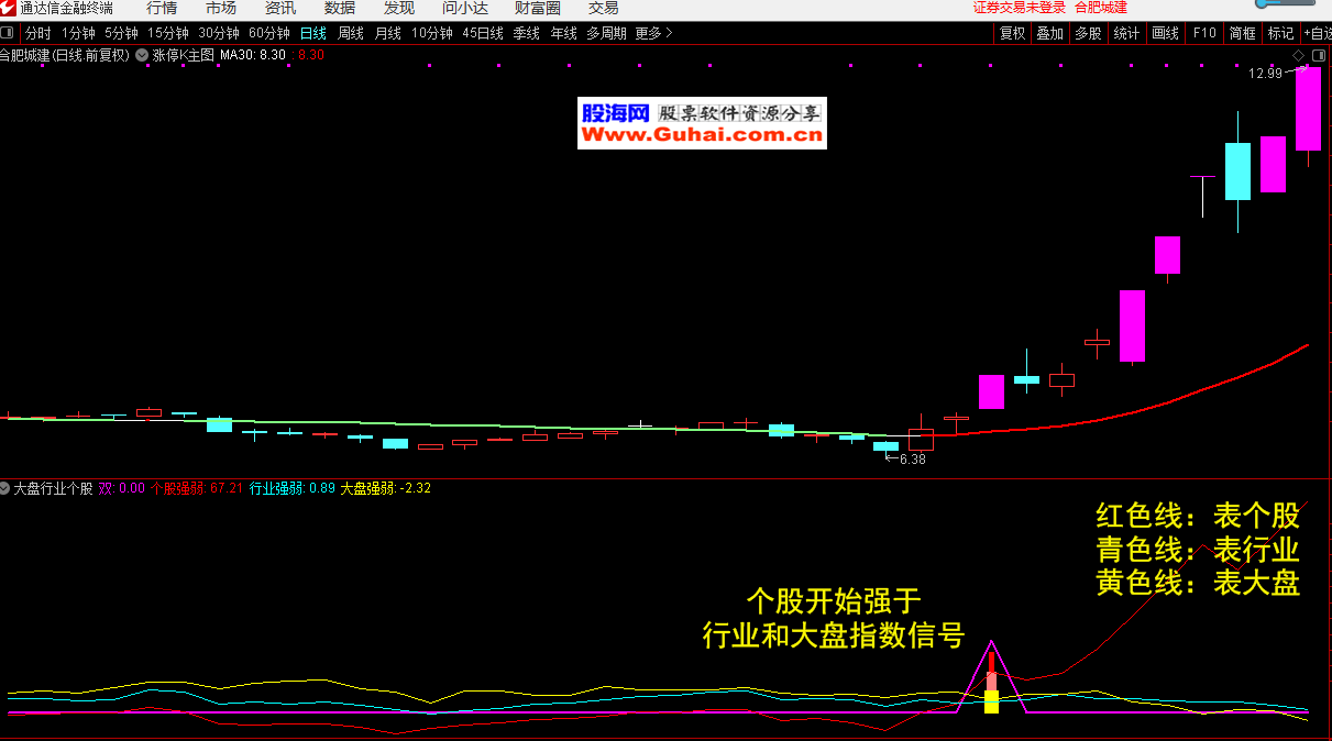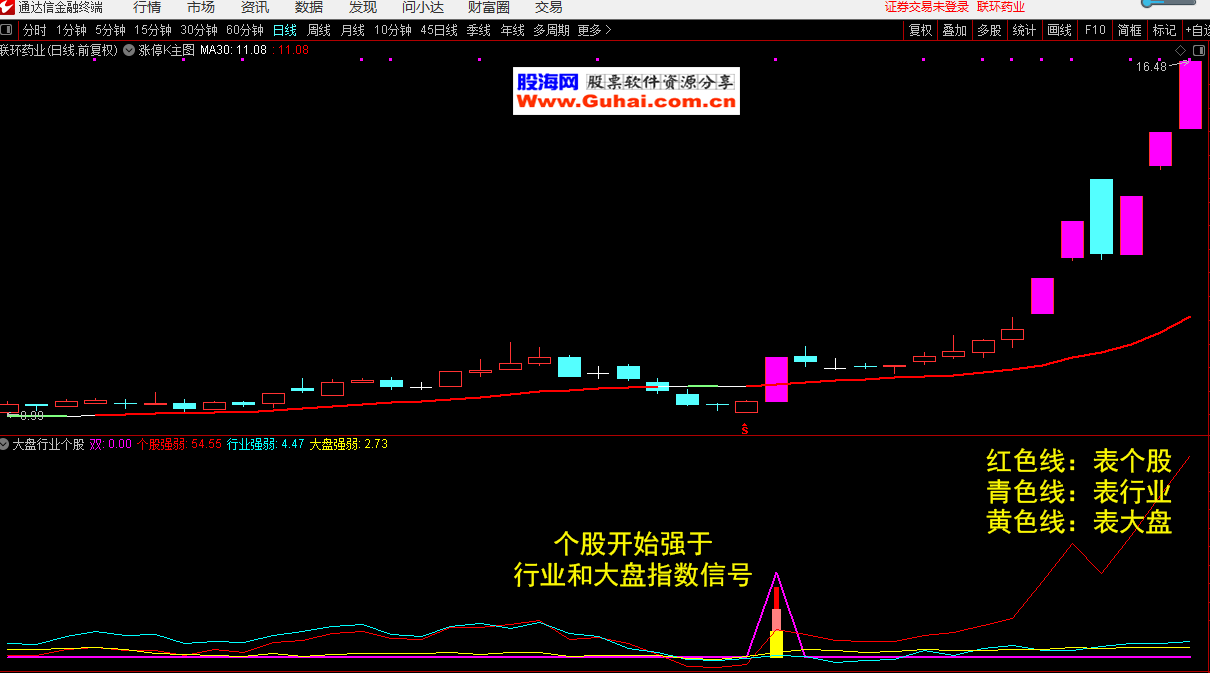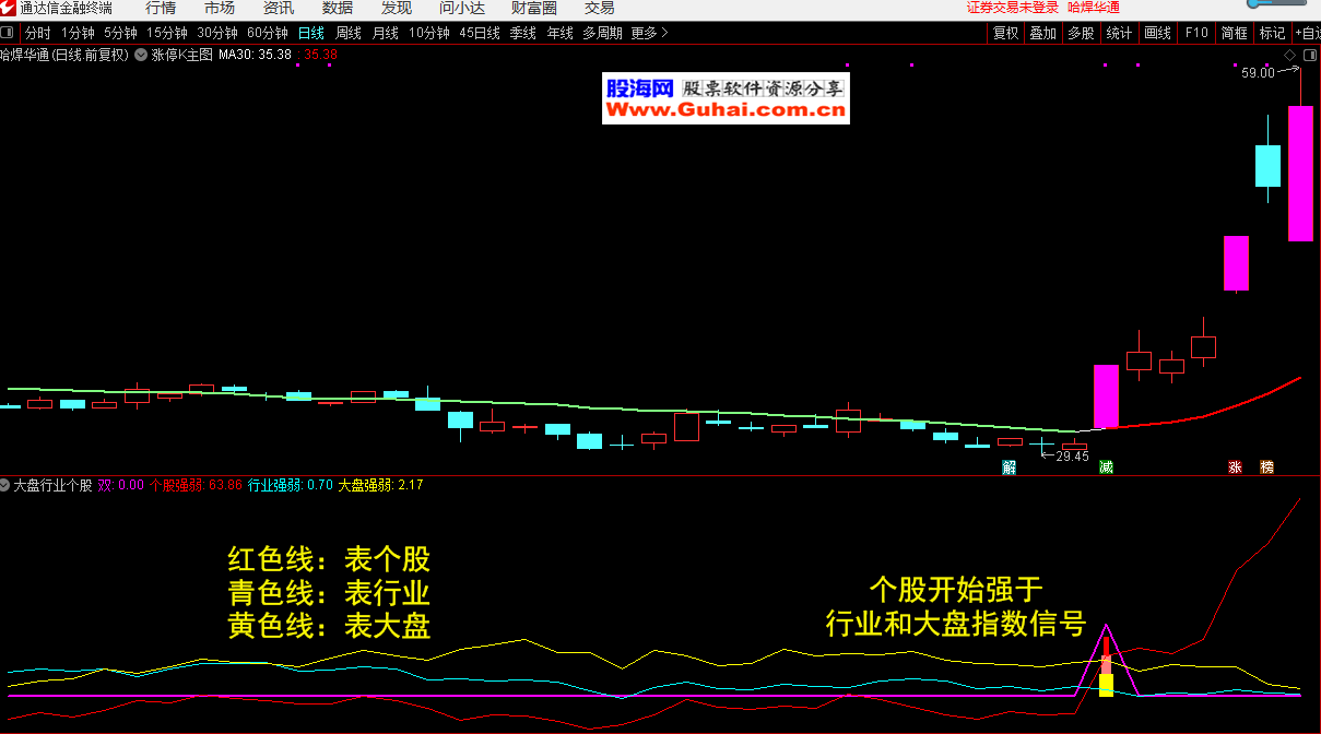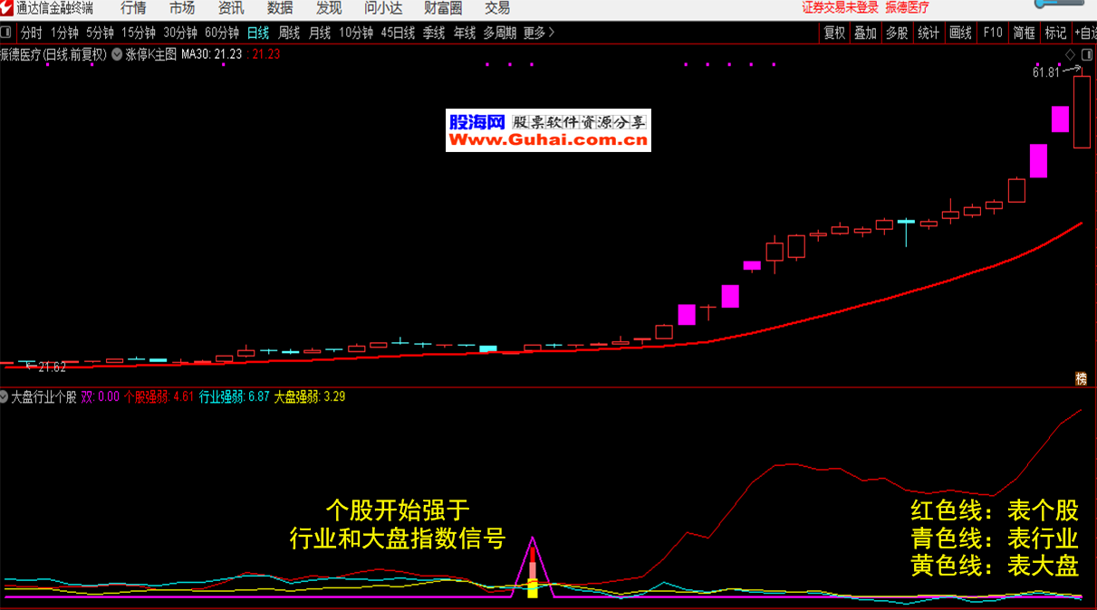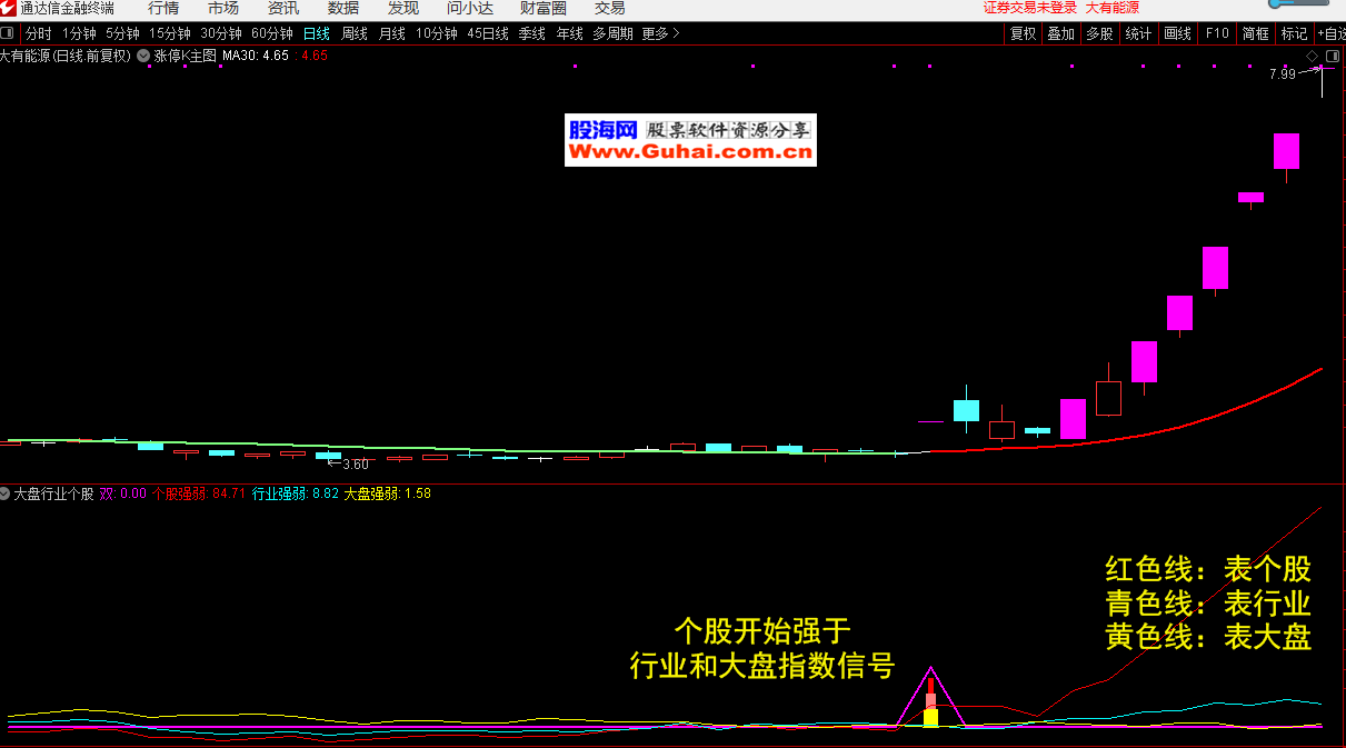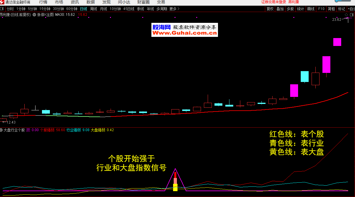 通达信 大盘行业个股强弱副图带选股公式/涨停K主图指标 源码文件分享