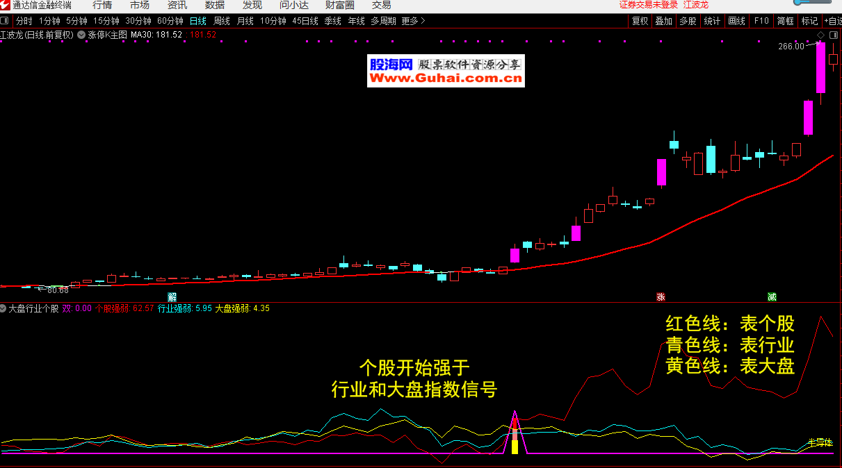 相关简介:大盘行业个股强弱副图公式是一款用于判断股票强弱的指标