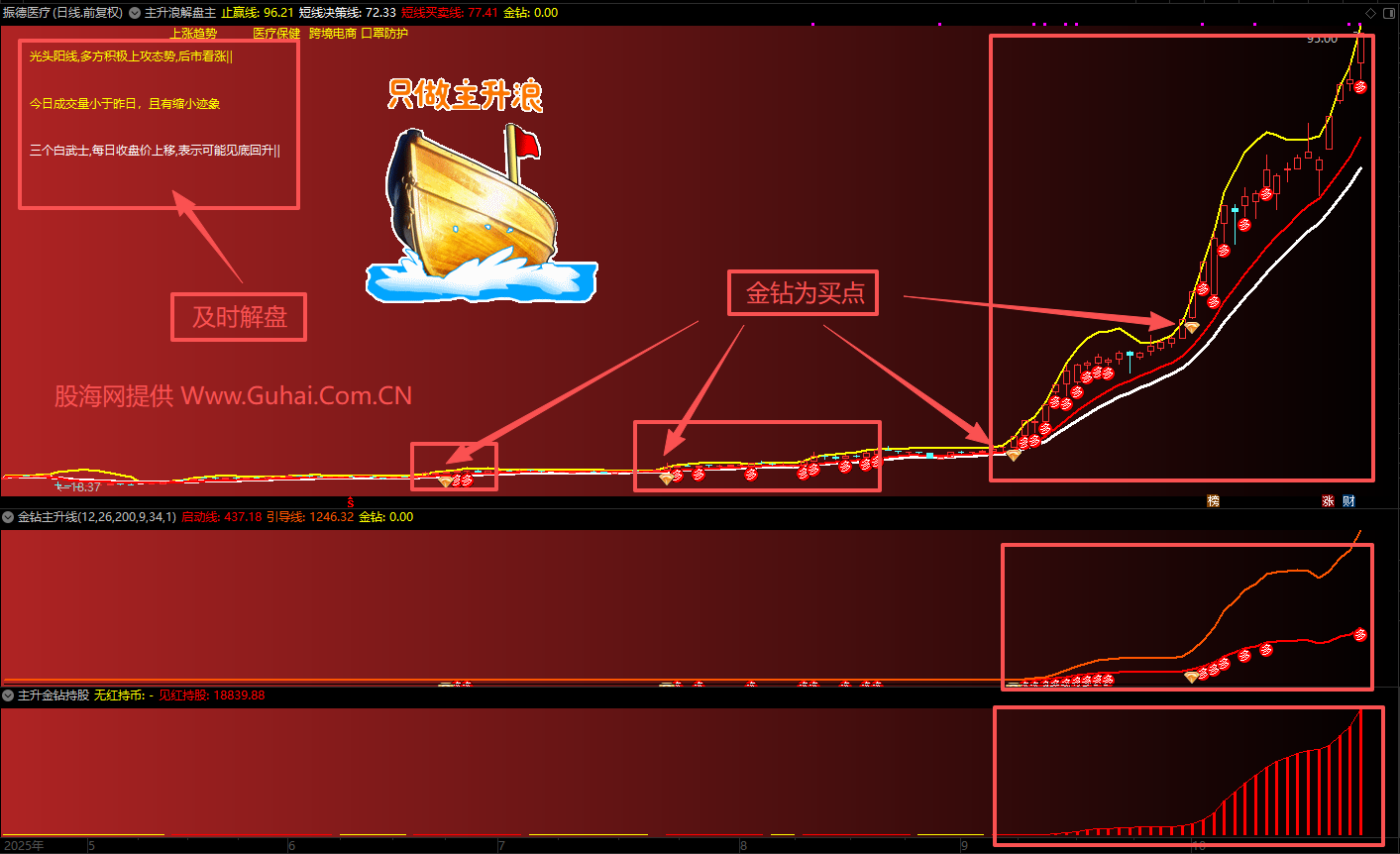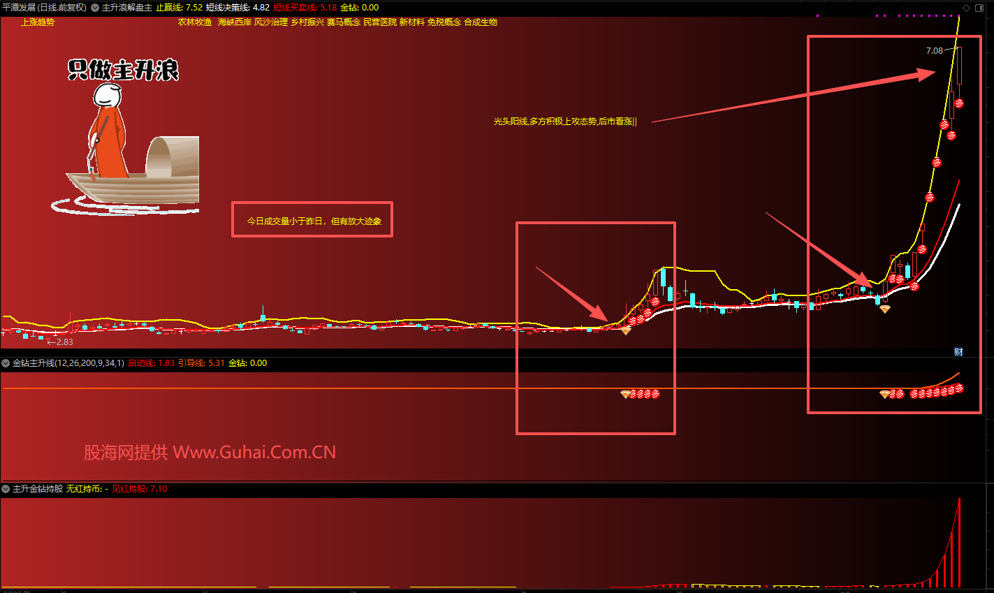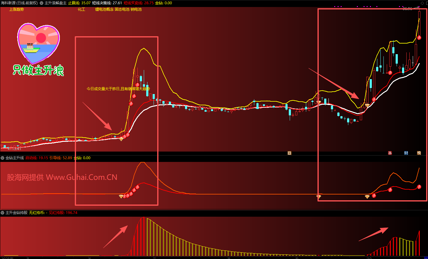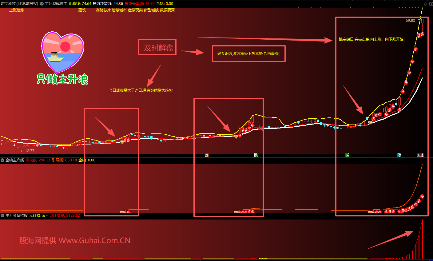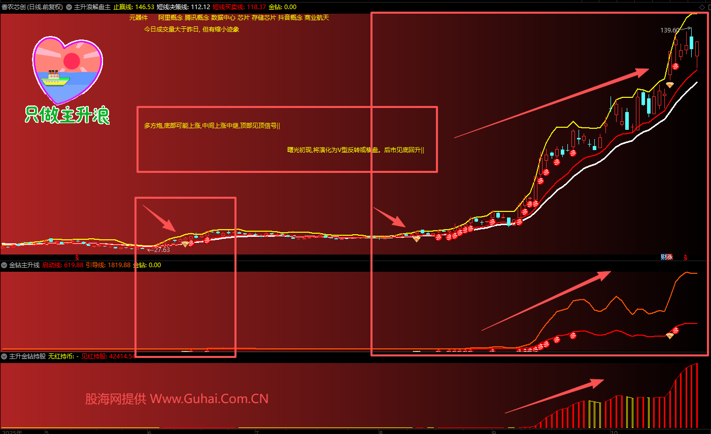 3、技术信号:通过均线多头排列、突破平台、量能配合等技术指标确认主升浪启动。
