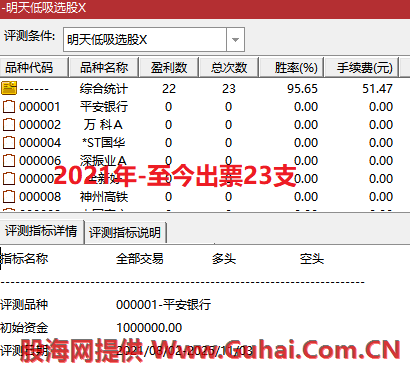 尾盘选股次日进场,信号很少一年就四五个信号,但胜率极高(下面有数据回测供参考),嫌信号少者慎选!