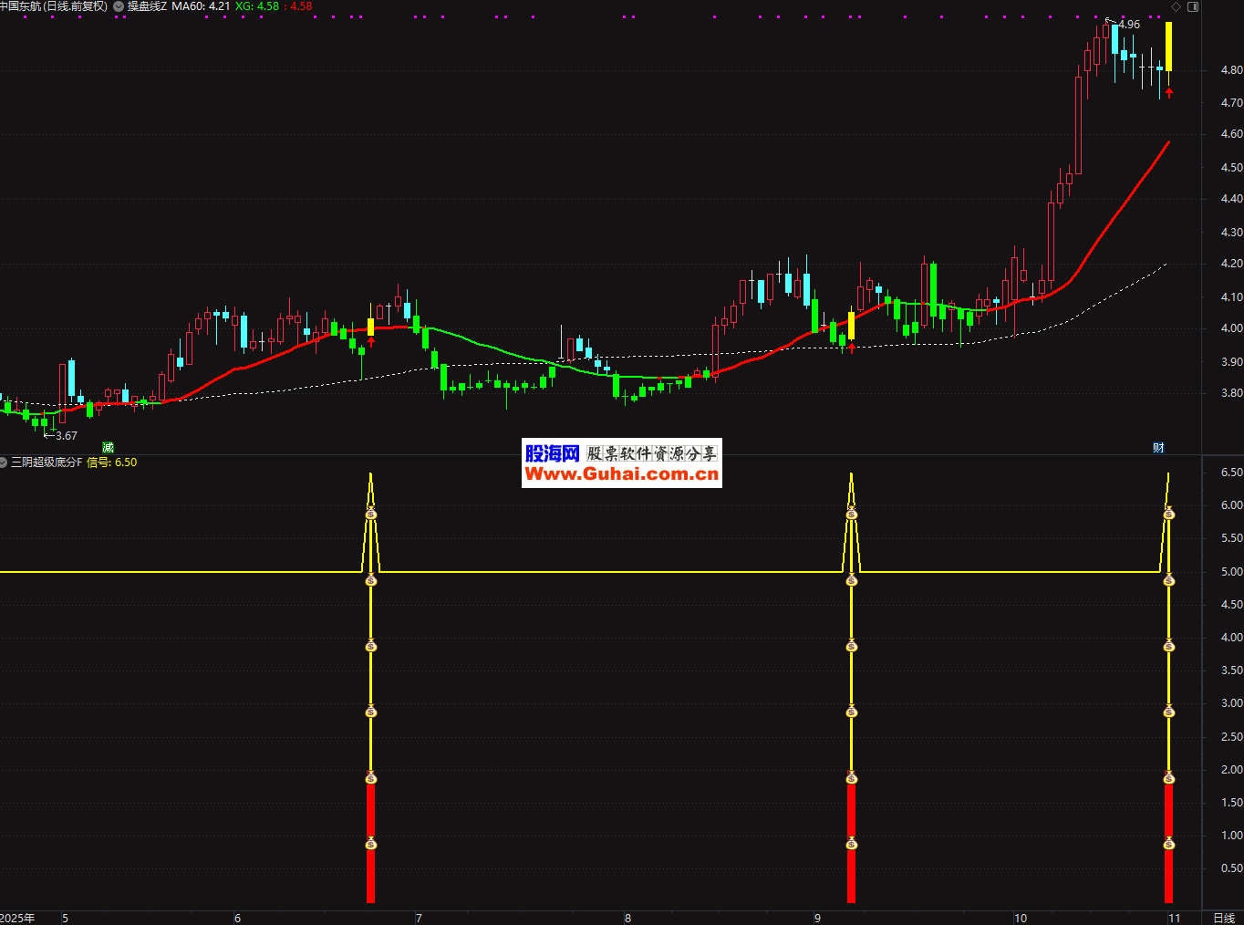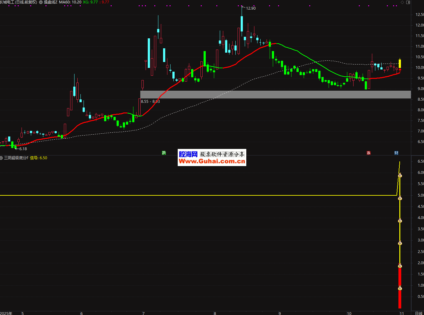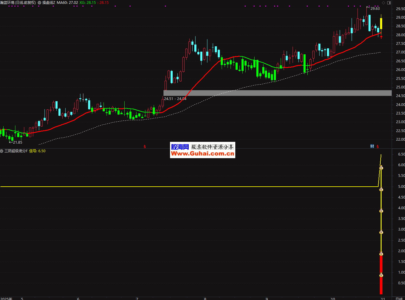 这个模型其实就是一个三阴超级底分型结构,加上它在操盘线上企稳,资金监控的数据良好,没有大额流出。所以它成功的概率就大。我们只能说概率,没有绝对的事情。