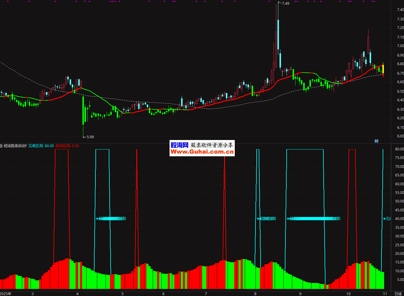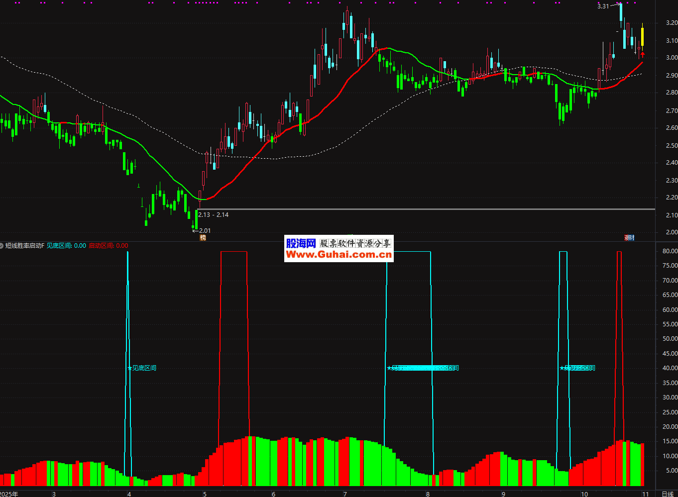 通达信〖短线高胜率启动〗副图/选股 判断股票的底部和启动信号 指标源码 指标通过计算价格在近期高低点之间的相对位置,判断股票的底部和启动信号。主要功能是识别两种关键时机:当股价长期弱势后出现企稳迹象时标记为“见底区间”;当股价连续走强且动量充足时标记为“启动区间”。操作策略是在见底区间关注潜在反转机会,在启动区间考虑跟进。