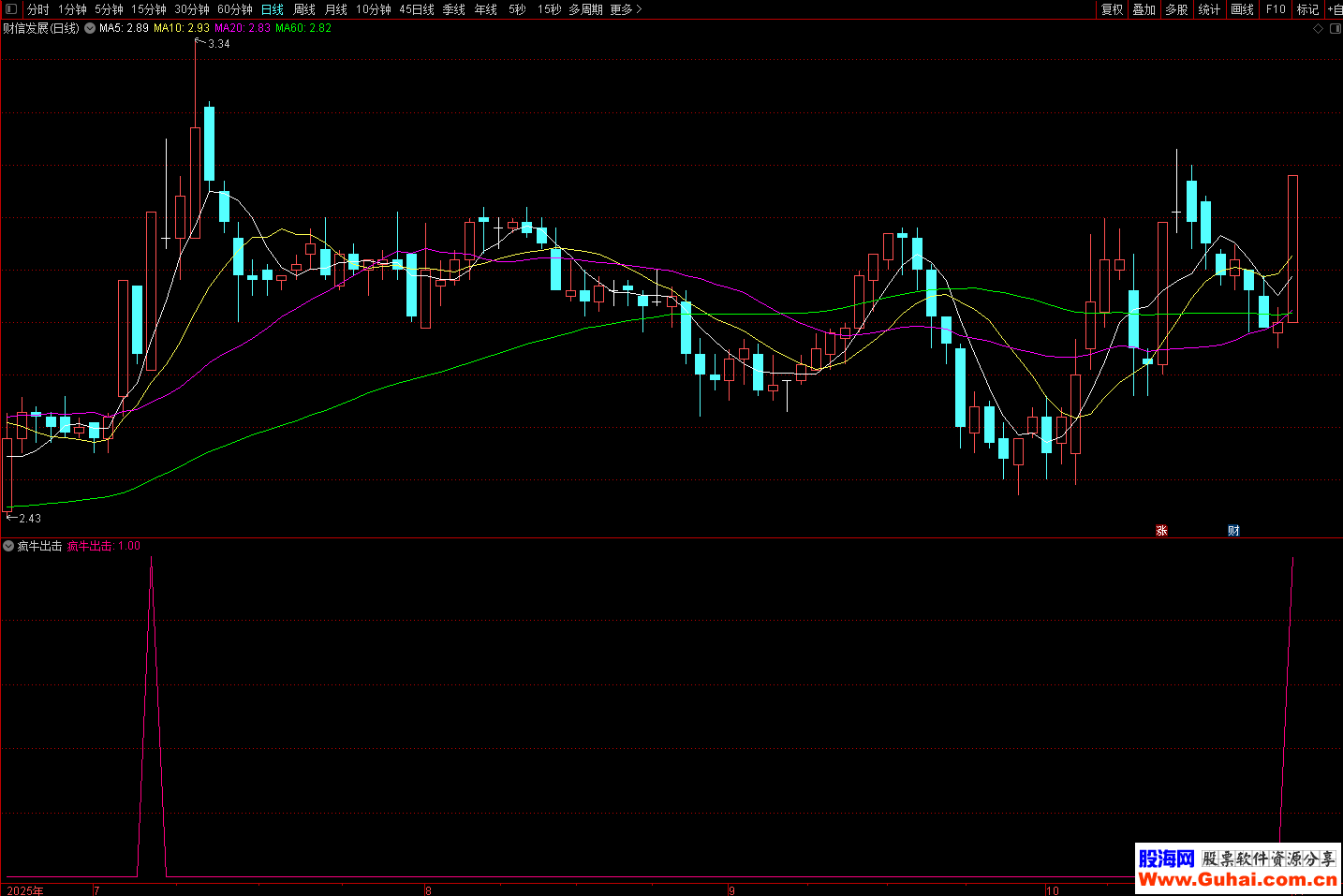 2. 当指标信号出现时,通常意味着近期曾有过显著的上涨动作,后续价格波动较为平稳,且再次出现了明显的上涨,可留意此时的市场表现。