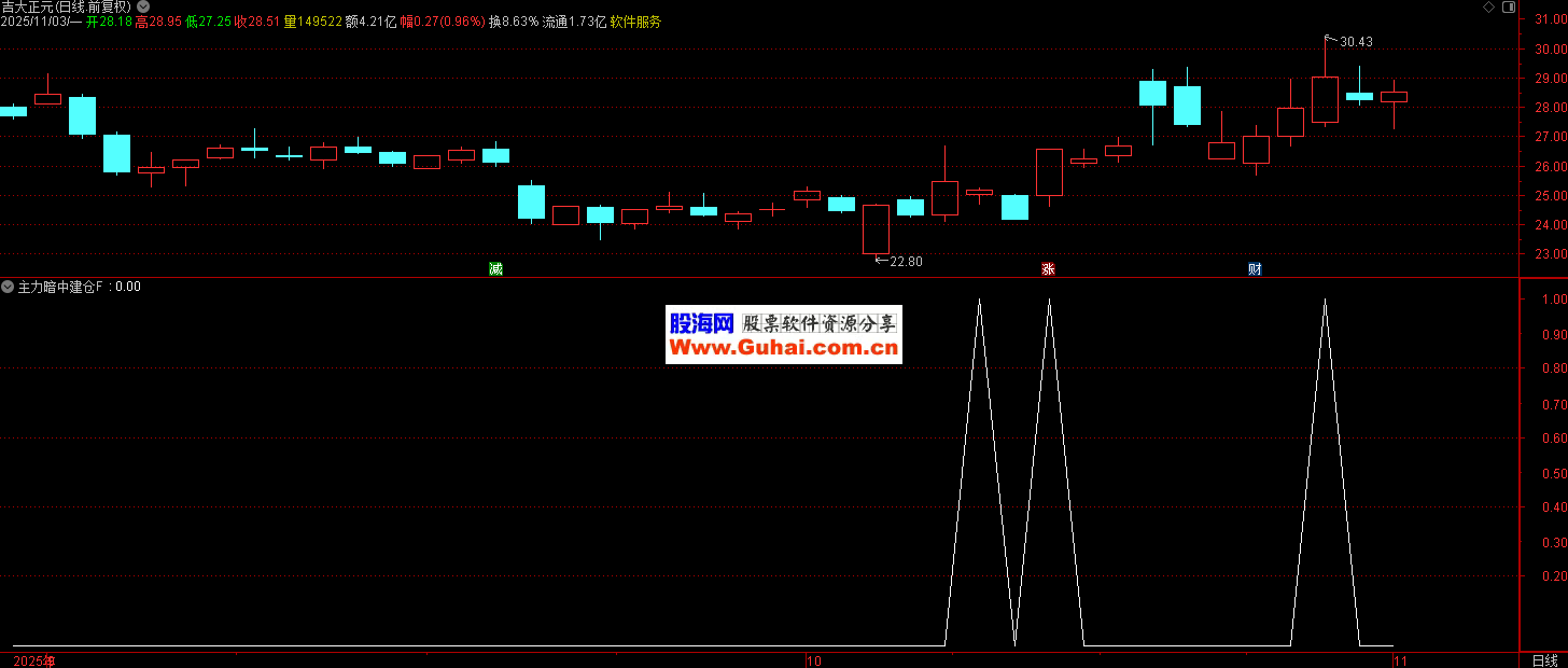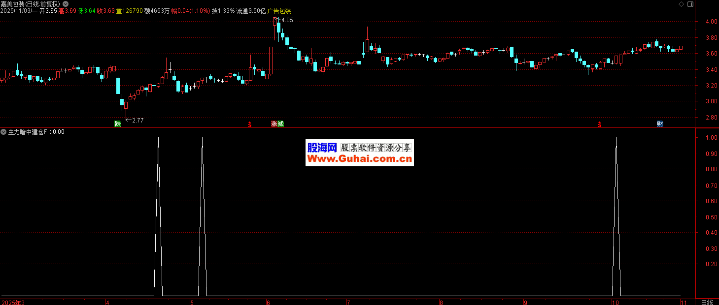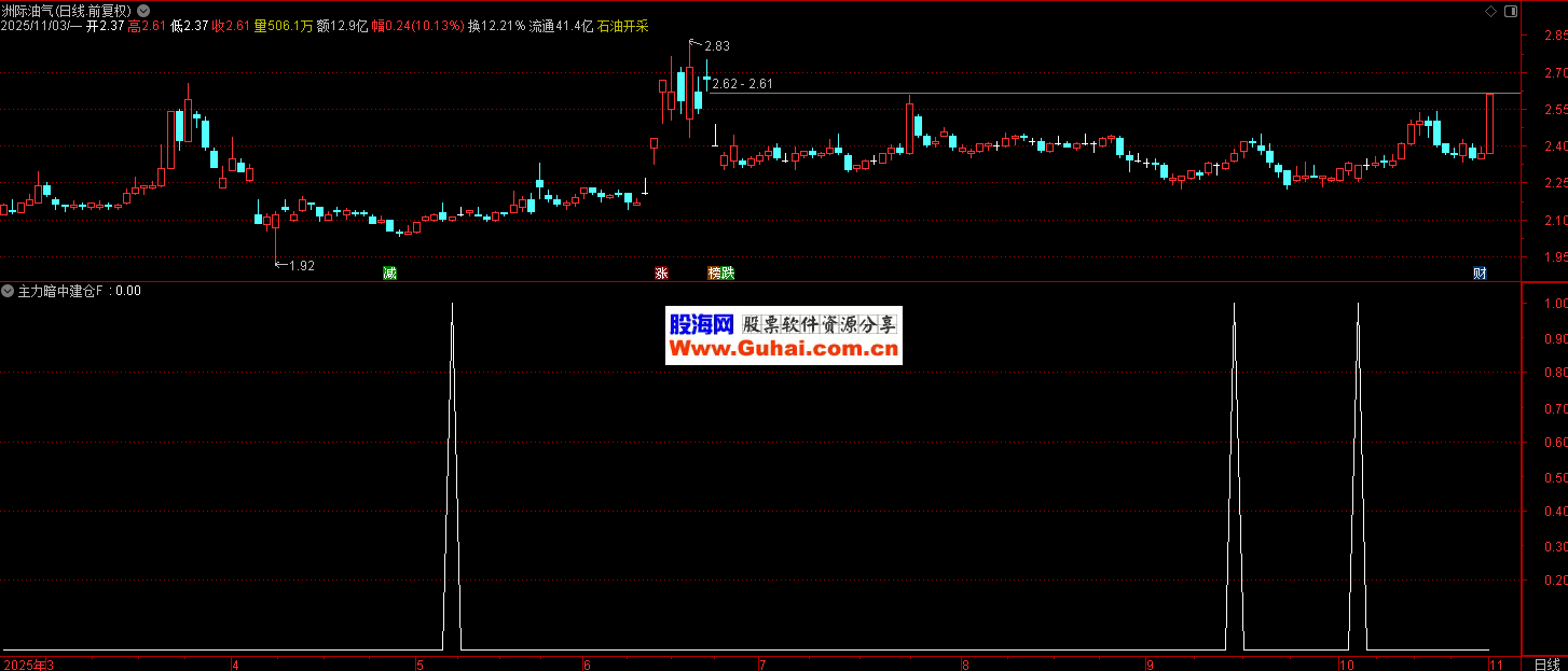 该指标通过整合价格波动、动量变化、资金流向等多维度数据,试图捕捉 “主力暗中建仓” 的信号,即主力在市场中低调吸筹的阶段,为判断潜在上涨动能提供参考。