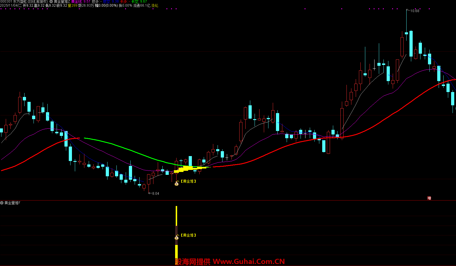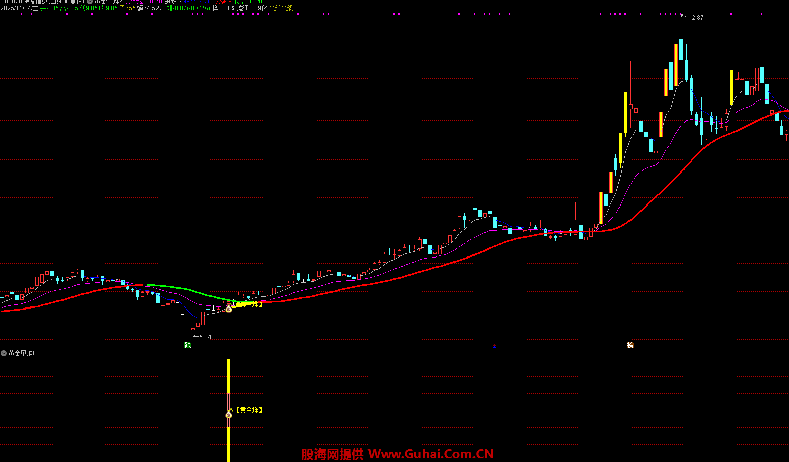 相关简介:“黄金量堆”信号,是核心转折标志,提示个股可能发生趋势反转