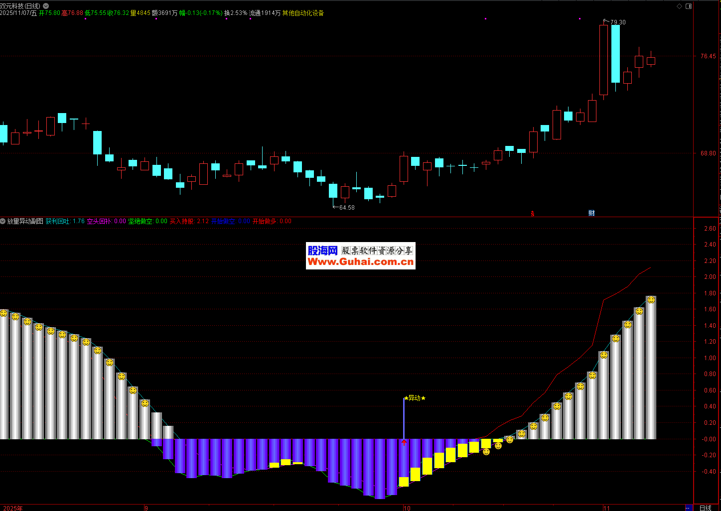 2.信号筛选:重点关注是否出现“★异动★”黄色文字提示,该提示代表强化做多信号,同时确认红色向上箭头图标是否同步出现。