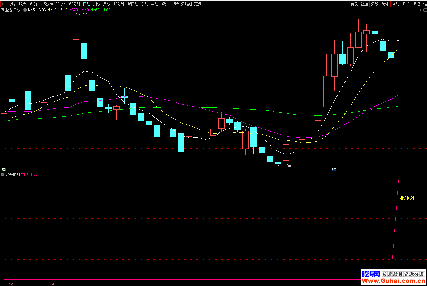 1、绝杀神剑信号基于多重技术指标的综合研判,当系统识别到短期动能与中长期趋势形成共振时,会在图表特定位置标记"绝杀神剑"提示。该信号结合了趋势强度、动量转换和价格位置等多维度分析要素。