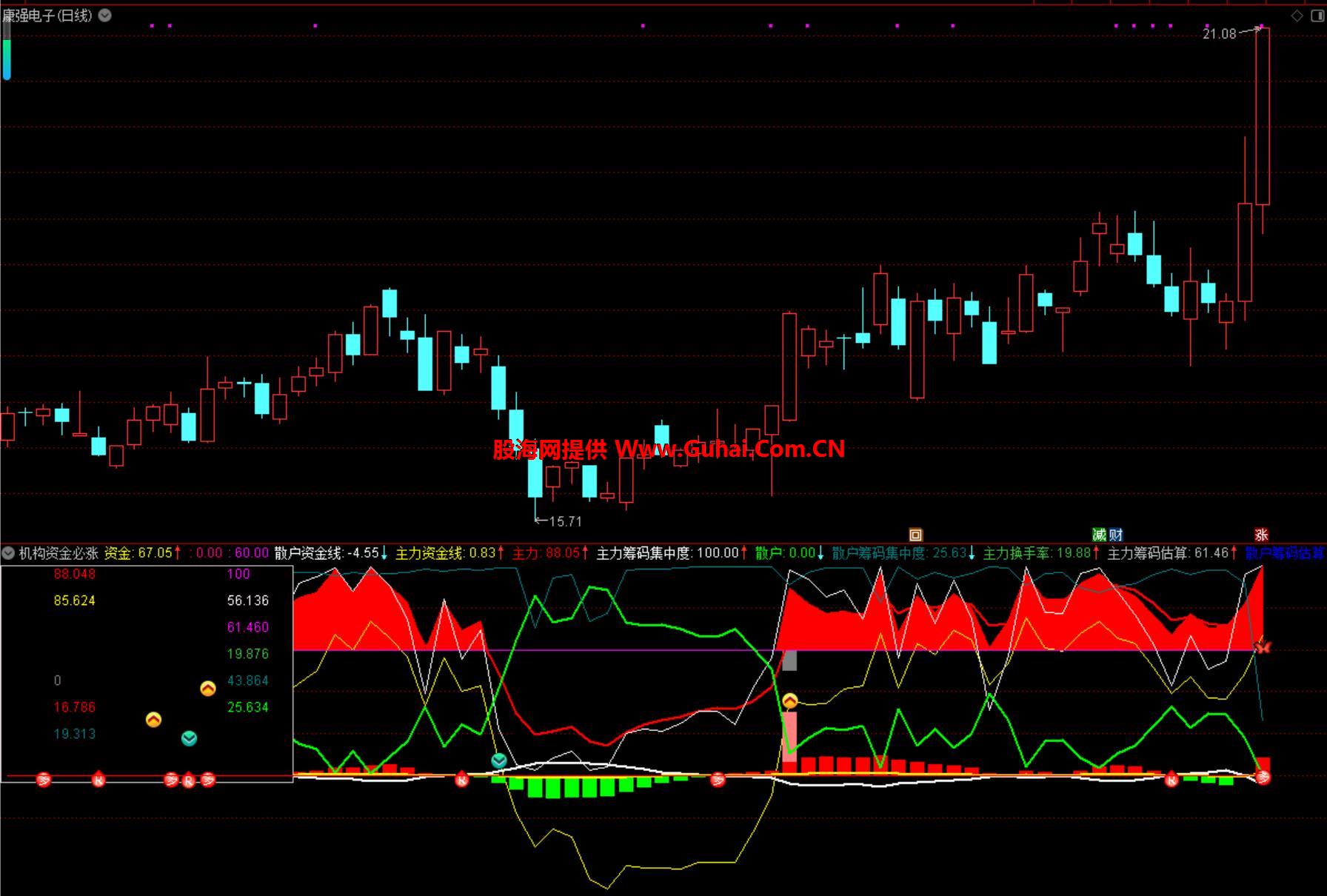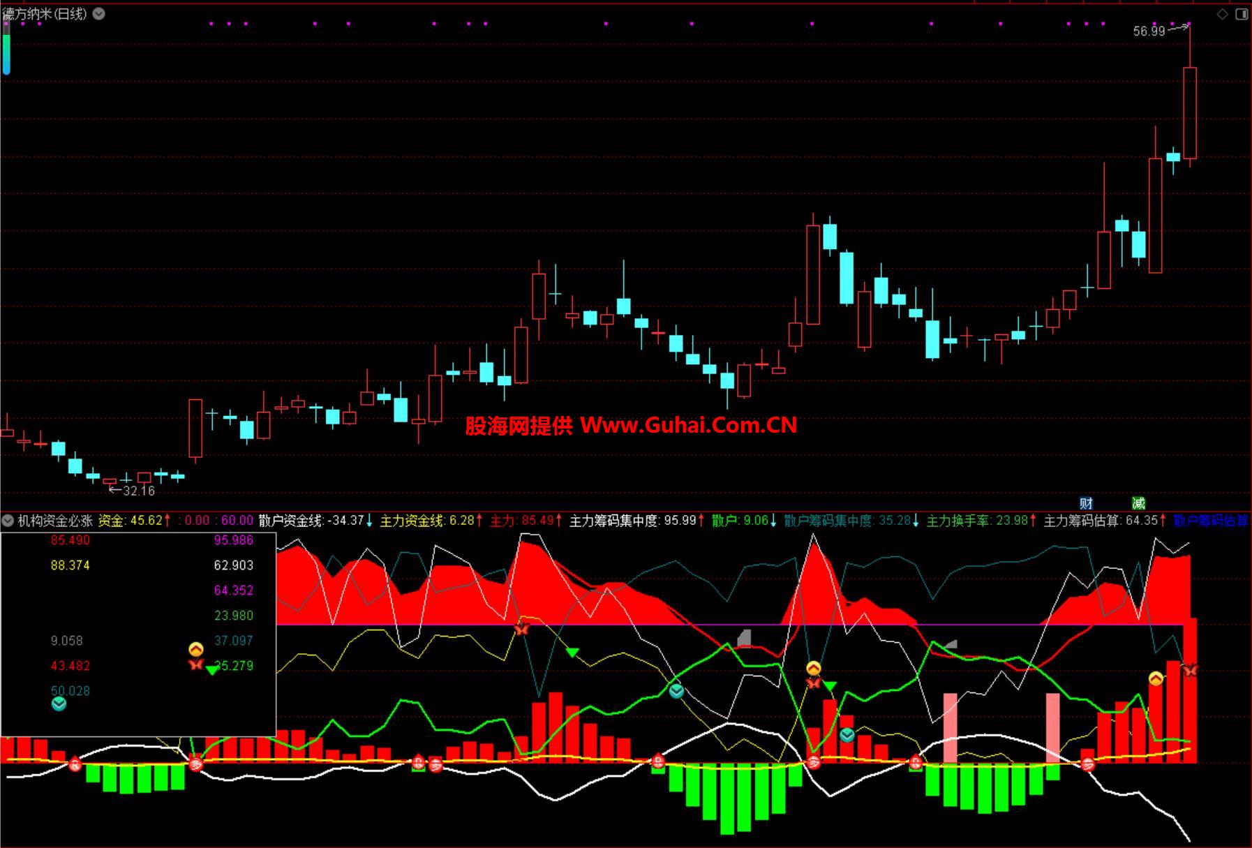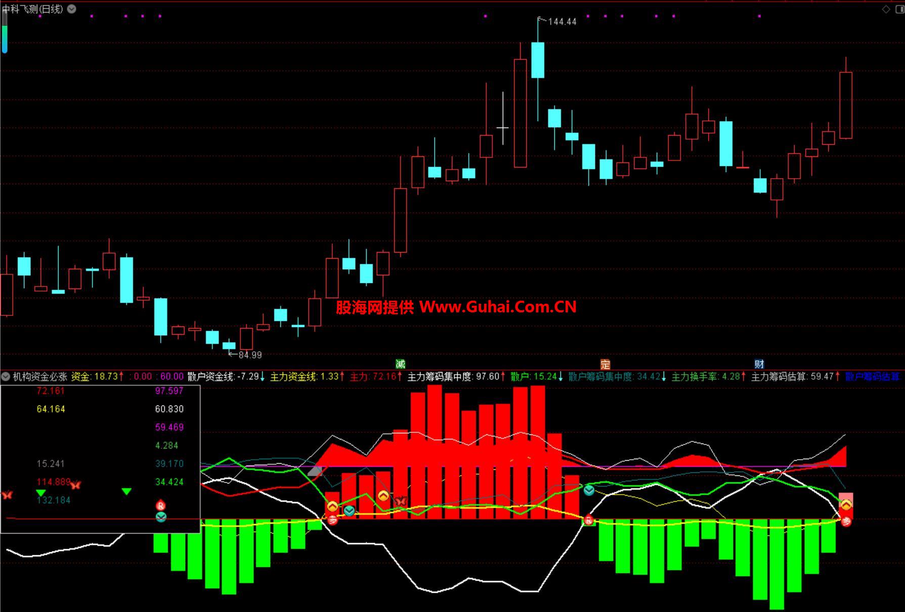 相关简介:机构资金必涨 副图选股指标优化版 给买入信号做了整理 分析主力筹码和主力控盘指标