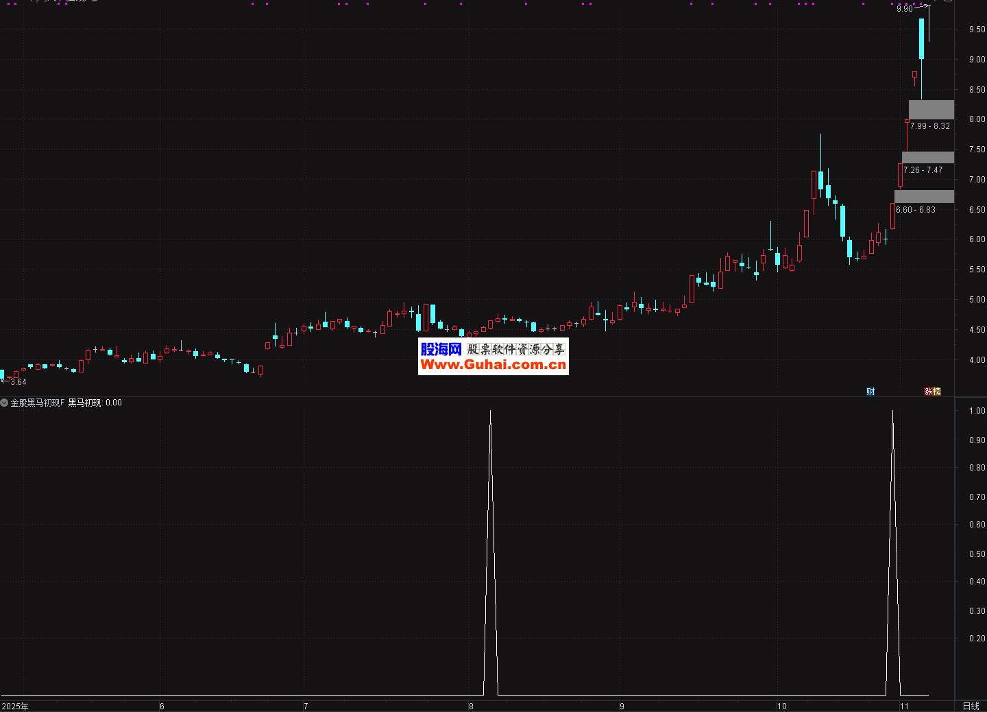 通达信金股黑马初现指标,这是一个 聚焦 “低位启动” 的短线捉妖指标,核心通过 KDJ 低位金叉 + 趋势转强 + 量能相关信号,捕捉黑马股初期上涨机会,信号直观、使用门槛低。