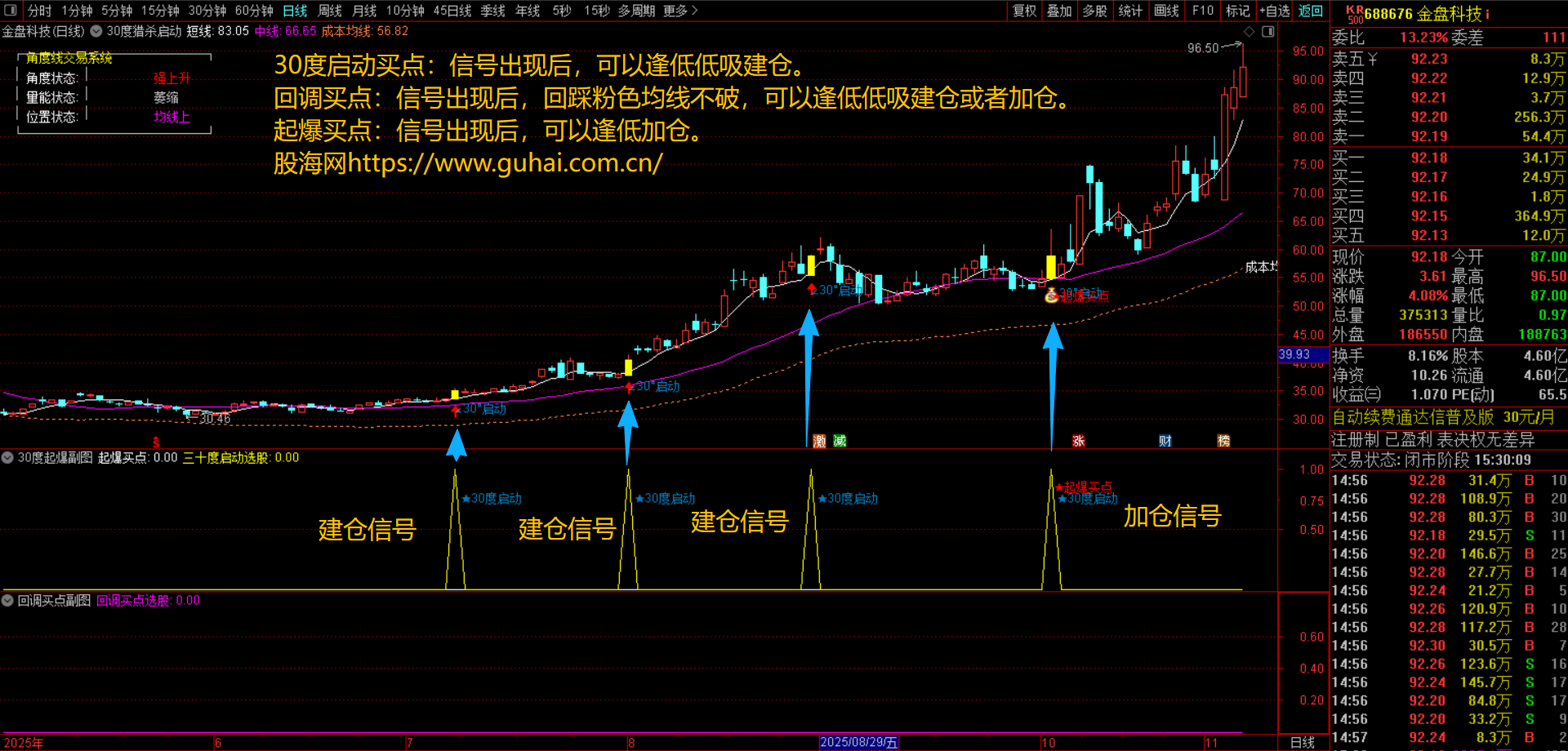通达信【30度猎杀启动】主副图选股指标,回调+启动+起爆三信号模式,源码无未来函数手机电脑通达信通用