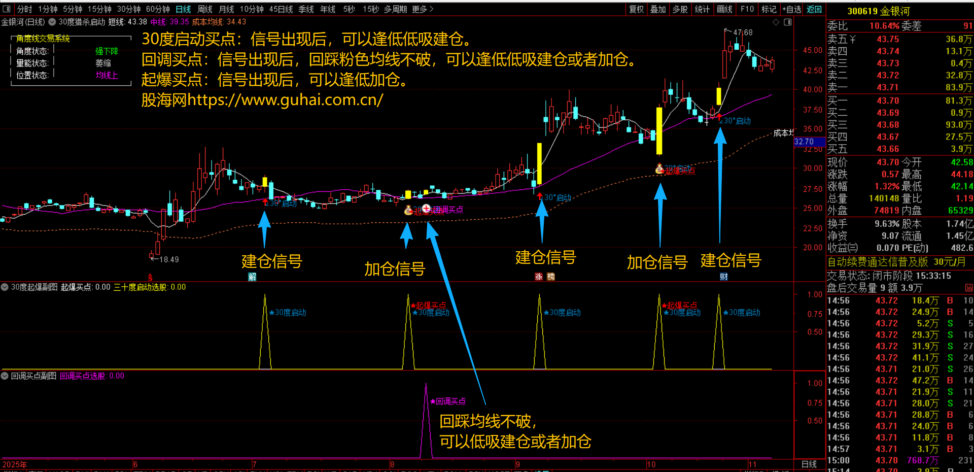 30度启动买点:信号出现后,可以逢低低吸建仓。