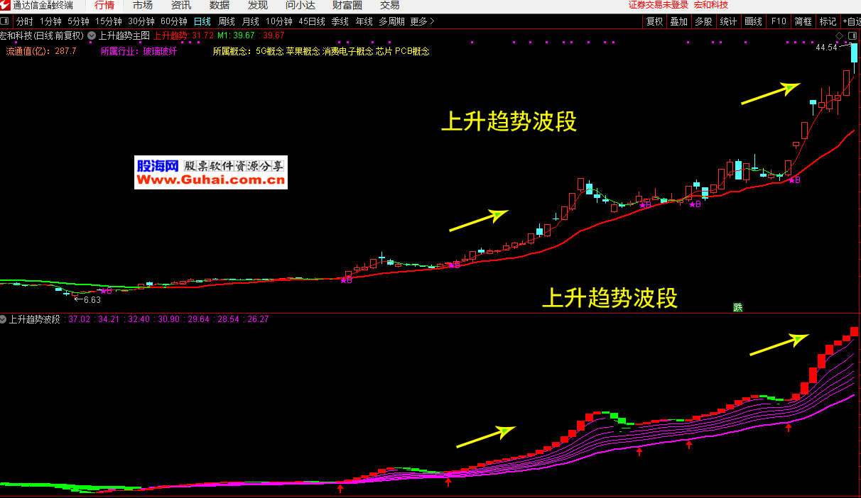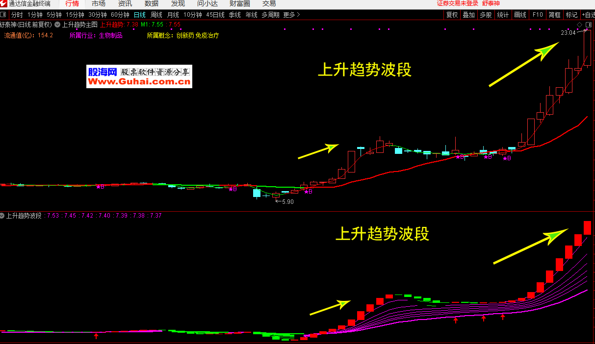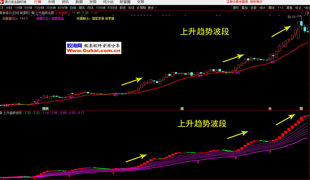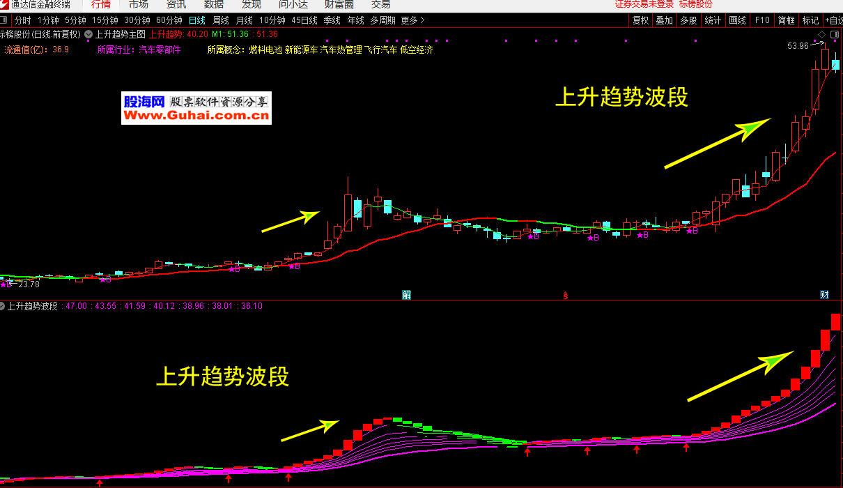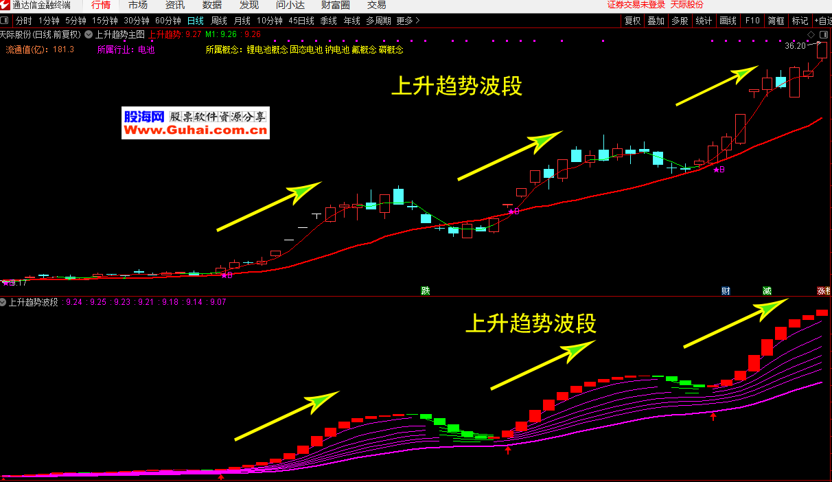通达信 上升趋势主图+上升趋势波段+趋势波段选股指标公式 无未来函数 源码文件分享