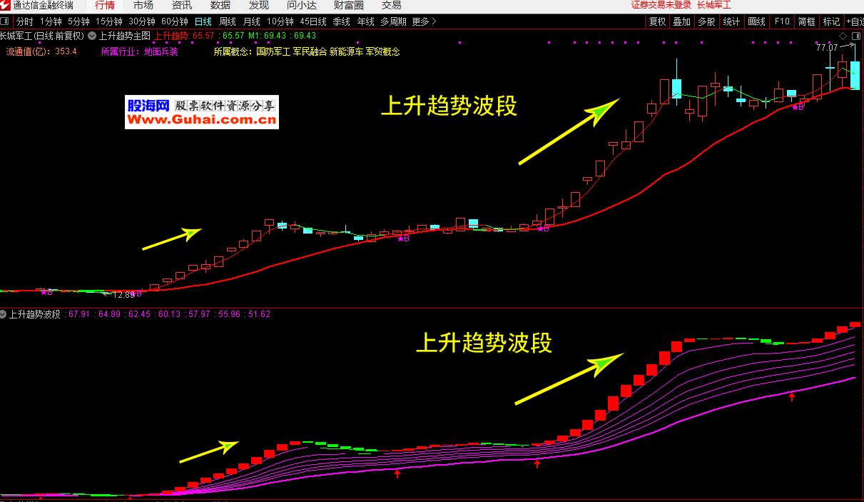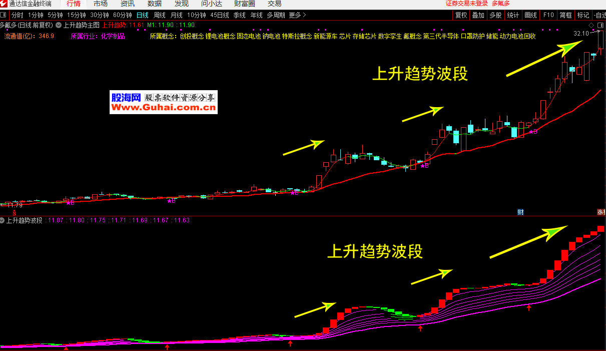 相关简介:相关简介:上升趋势主图和上升趋势波段副图是一款用于短线和中线的指标
