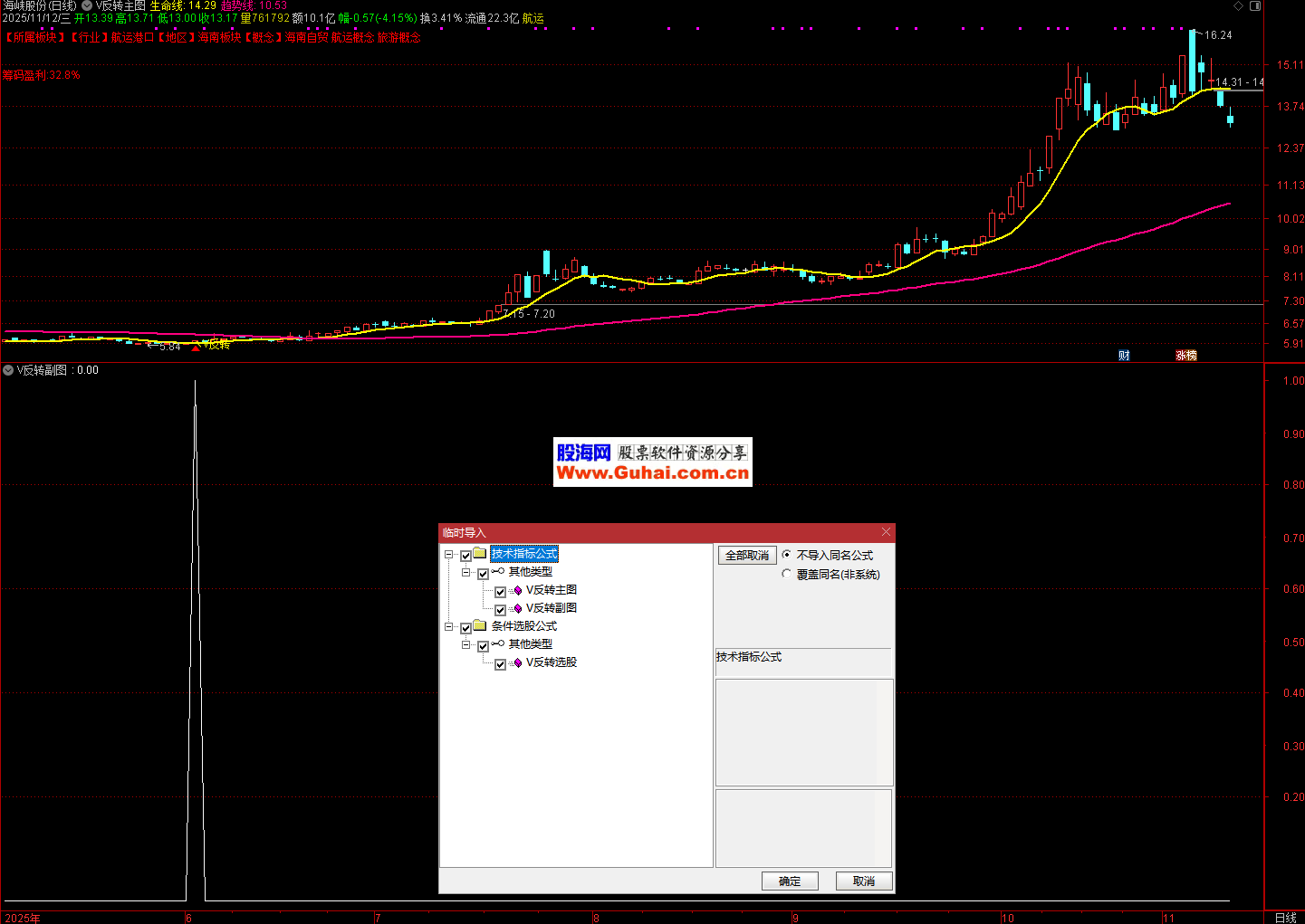 专为捕捉股价趋势V型转折设计 源码 指标包含主、副及选公式,专为捕捉股价趋势V型转折设计,适用于通达信软件,可直接用于选或预警。