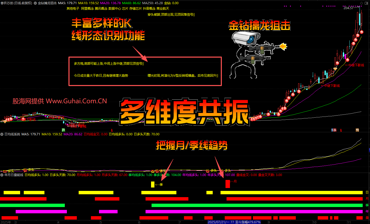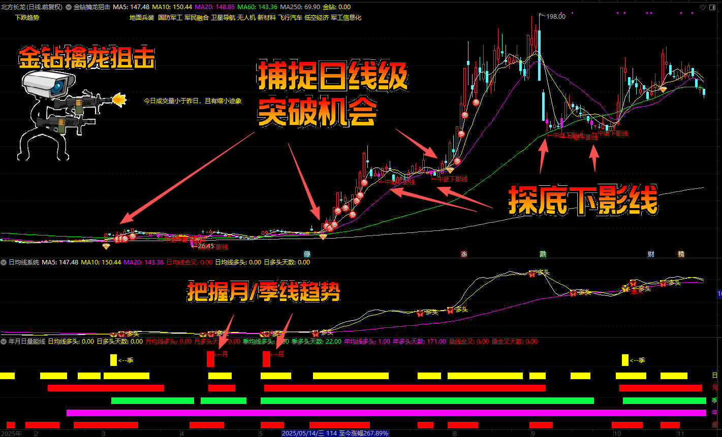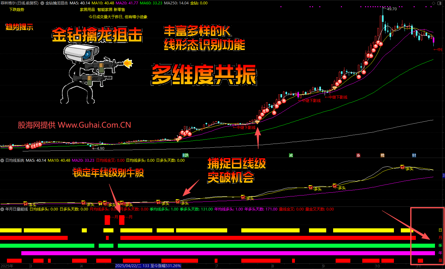 1、均线实时多头排列检测,精准识别日/月/季/年线级别趋势,避免“假突破”陷阱。