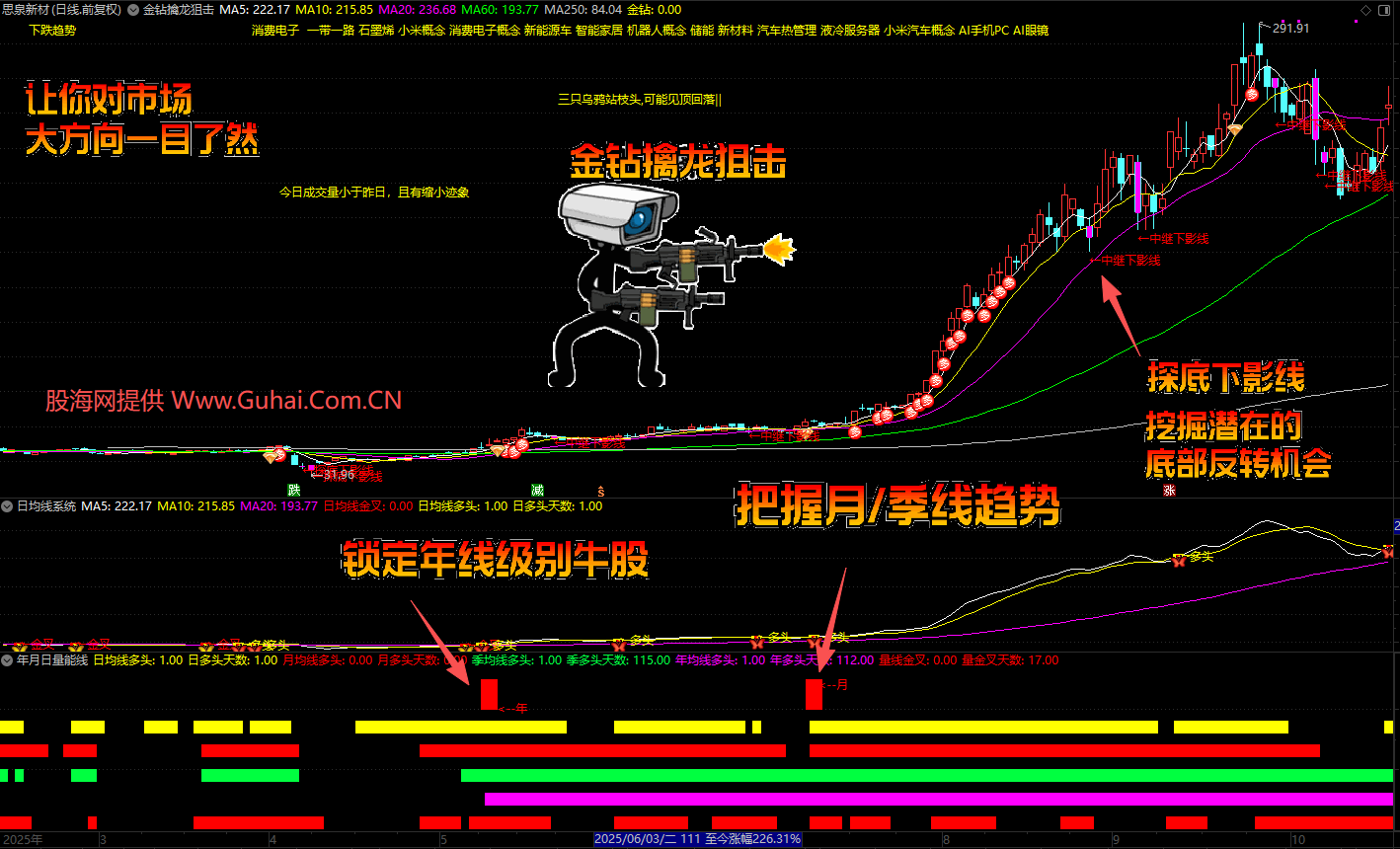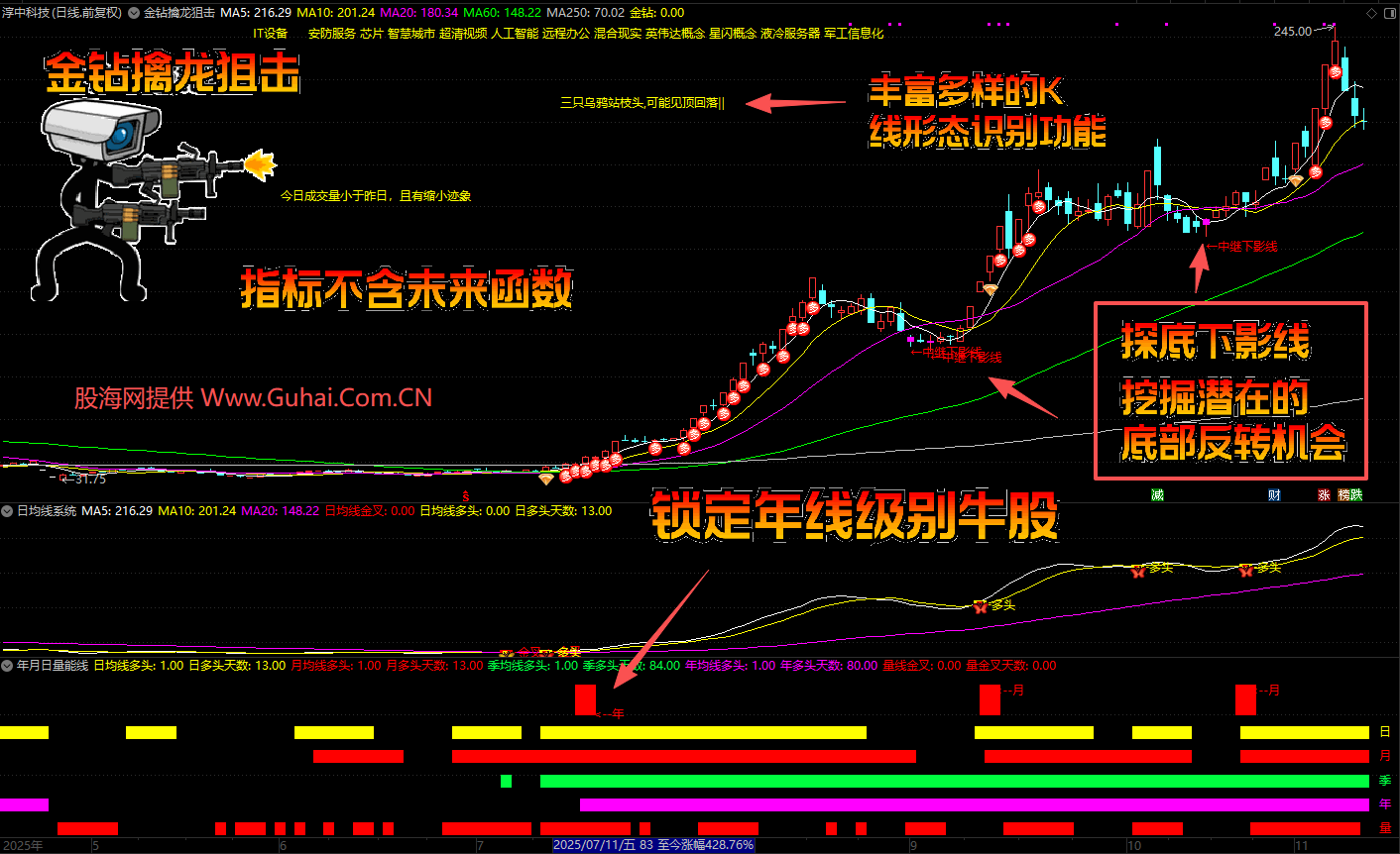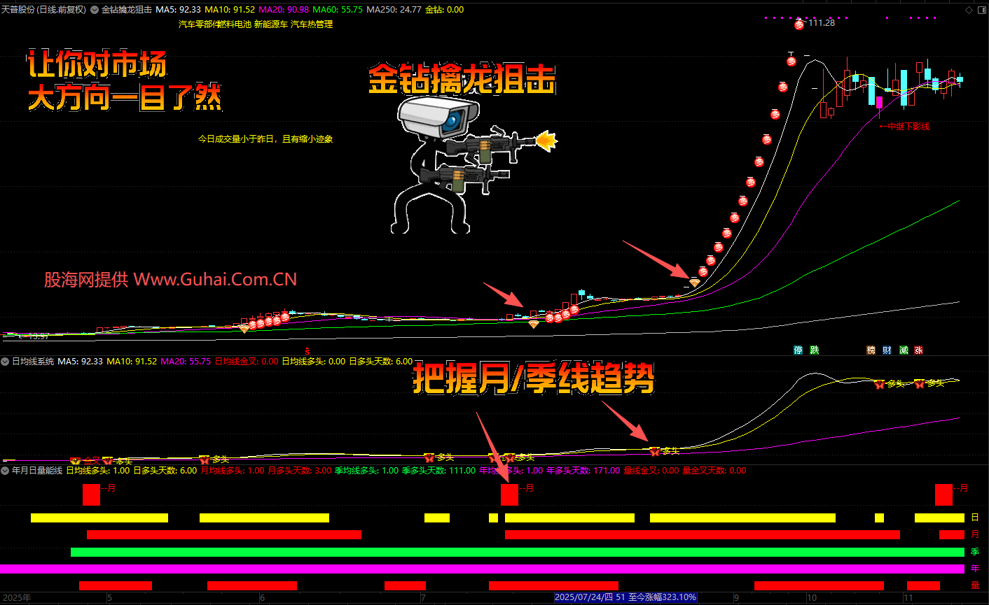 1、均线实时多头排列检测,精准识别日/月/季/年线级别趋势,避免“假突破”陷阱。