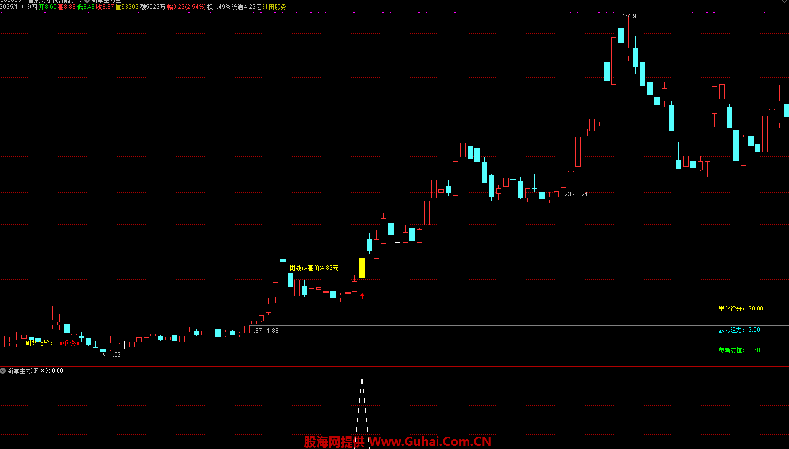 指标包含一主图,一副图和一选股指标,无未来函数。该指标若精准捕捉一次,常能带来股价大幅上涨且持续性强,涨势如妖股般强劲。