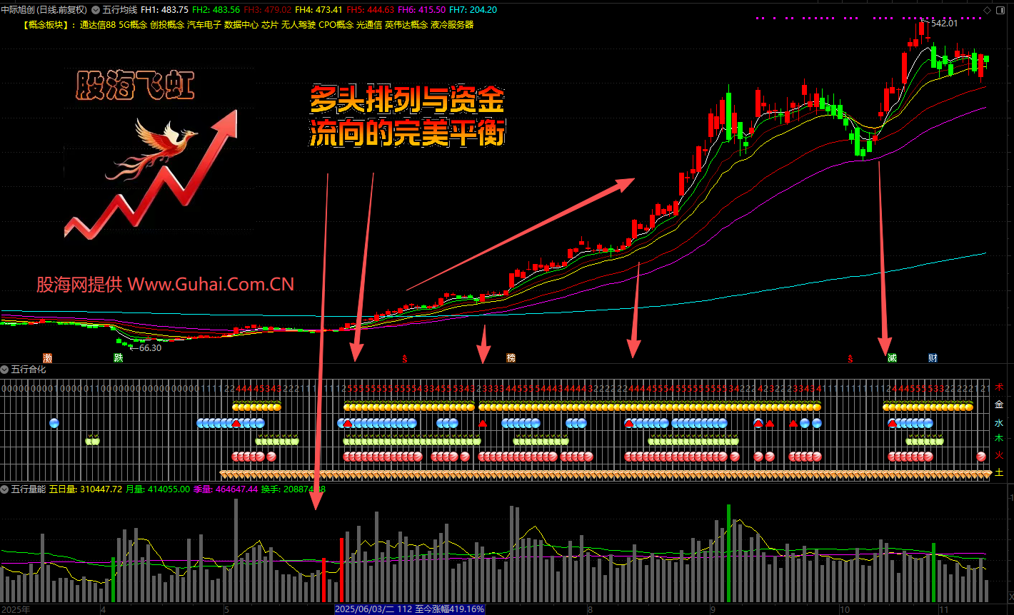 1、阴阳平衡:多头排列与资金流向的完美平衡
