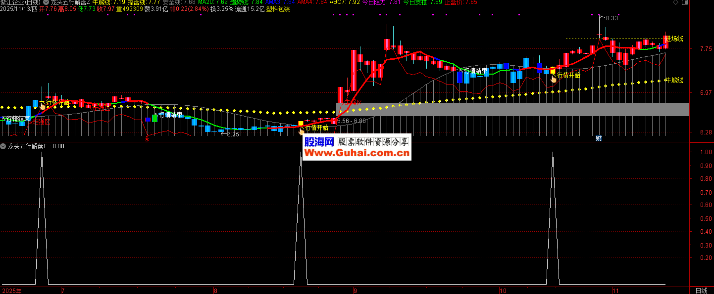 成交量配合:“行情开始” 信号出现时,若成交量放大→信号有效性更高;缩量则需谨慎(可能是假突破)
