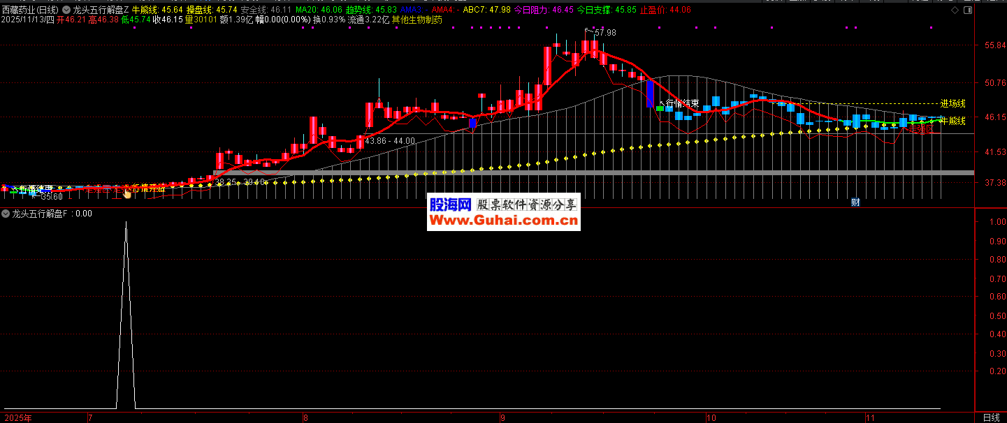 进场线需基于近期 9 日低点及后续高点回溯计算,若股价处于极端单边上涨 / 下跌,可能因无有效高点参考导致暂时不显示,属于正常情况,可关注安全线和牛熊线。