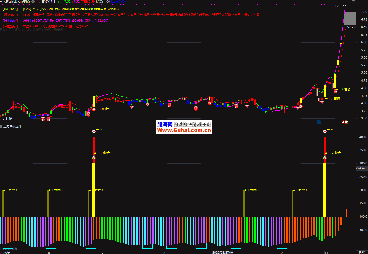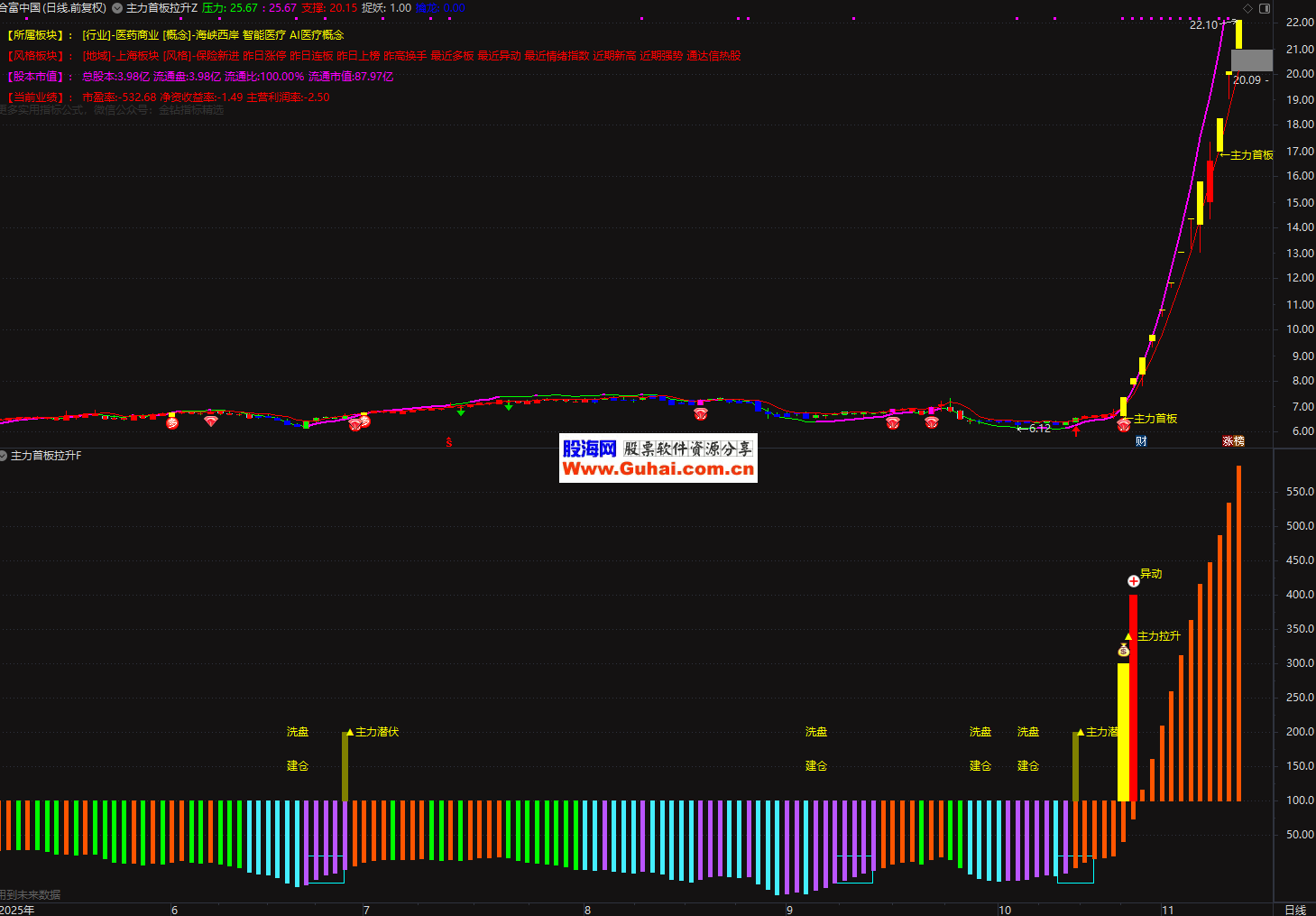 通达信〖主力潜伏拉升〗不同阶段给出明确的建仓、洗盘、主力潜伏等提示 主副图/选股