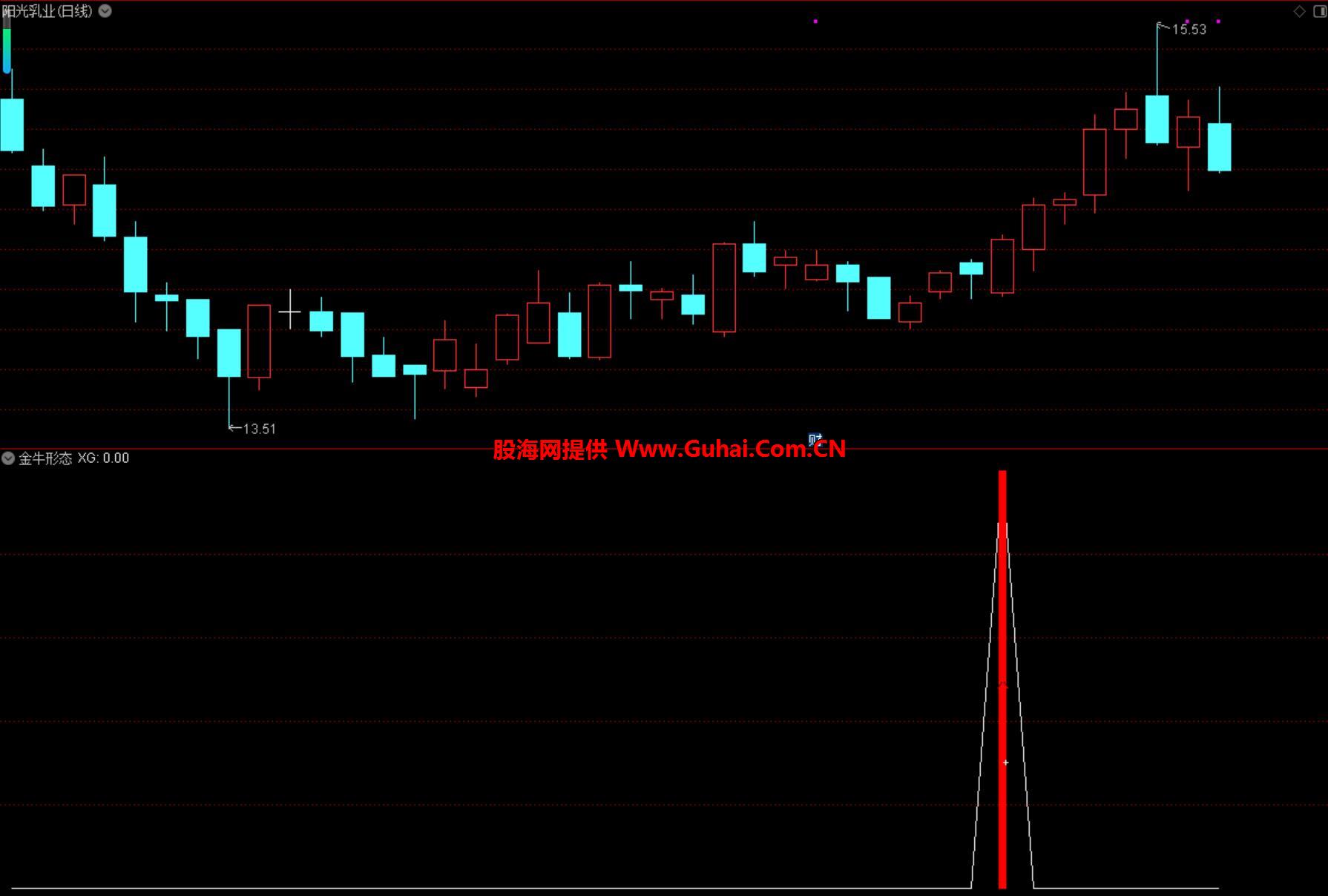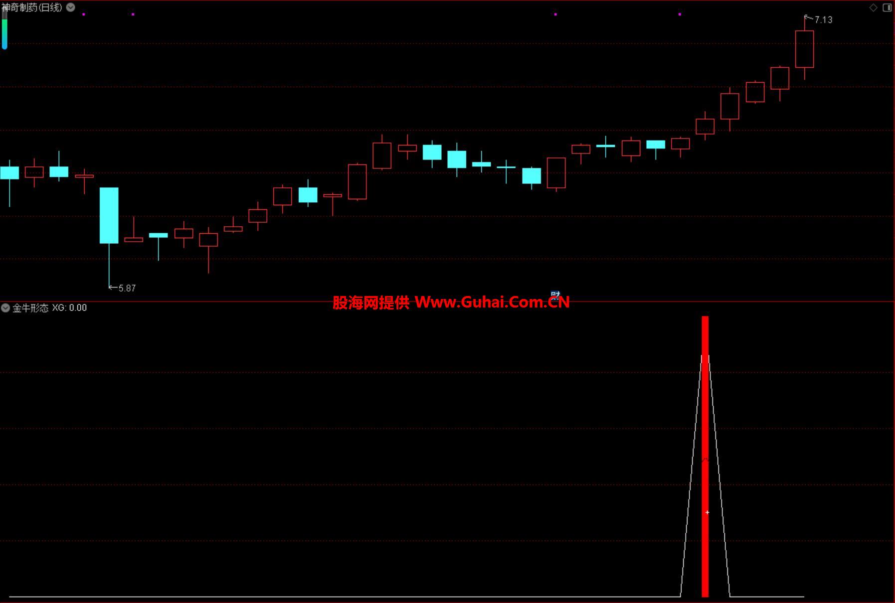 相关简介:金牛形态 副图选股指标 趋势可能由弱转强 用于捕捉低位启动的潜在机会 适合中短线操作