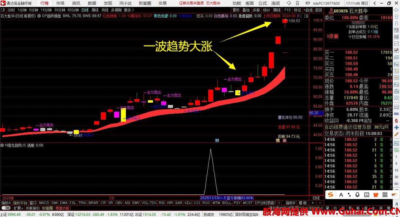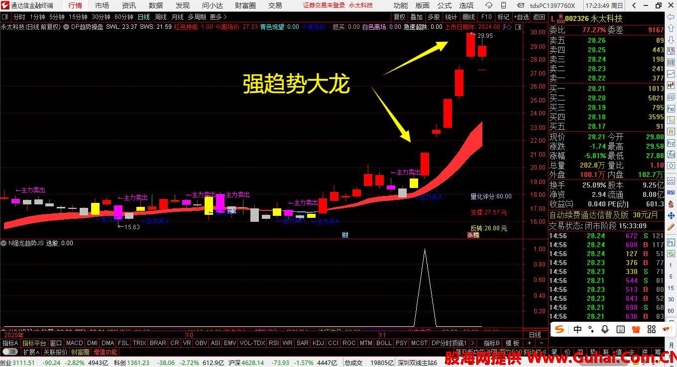 通达信—麒麟强龙趋势选股策略—通达信平台评分4.68的优秀同源指标卖疯了,1选+1主图+1副图