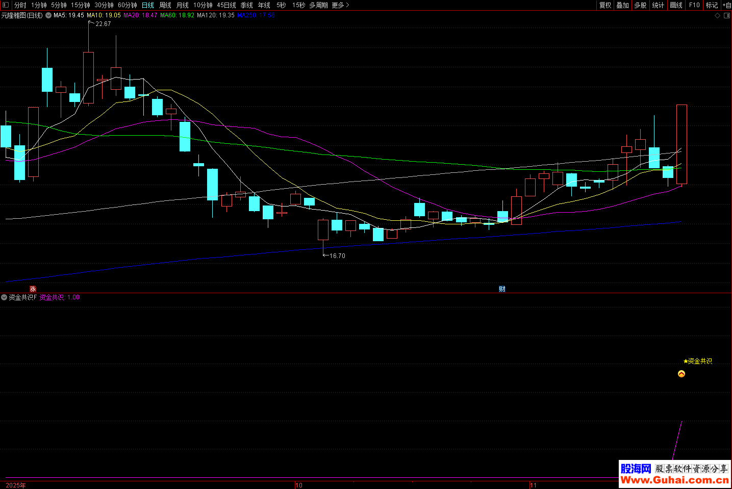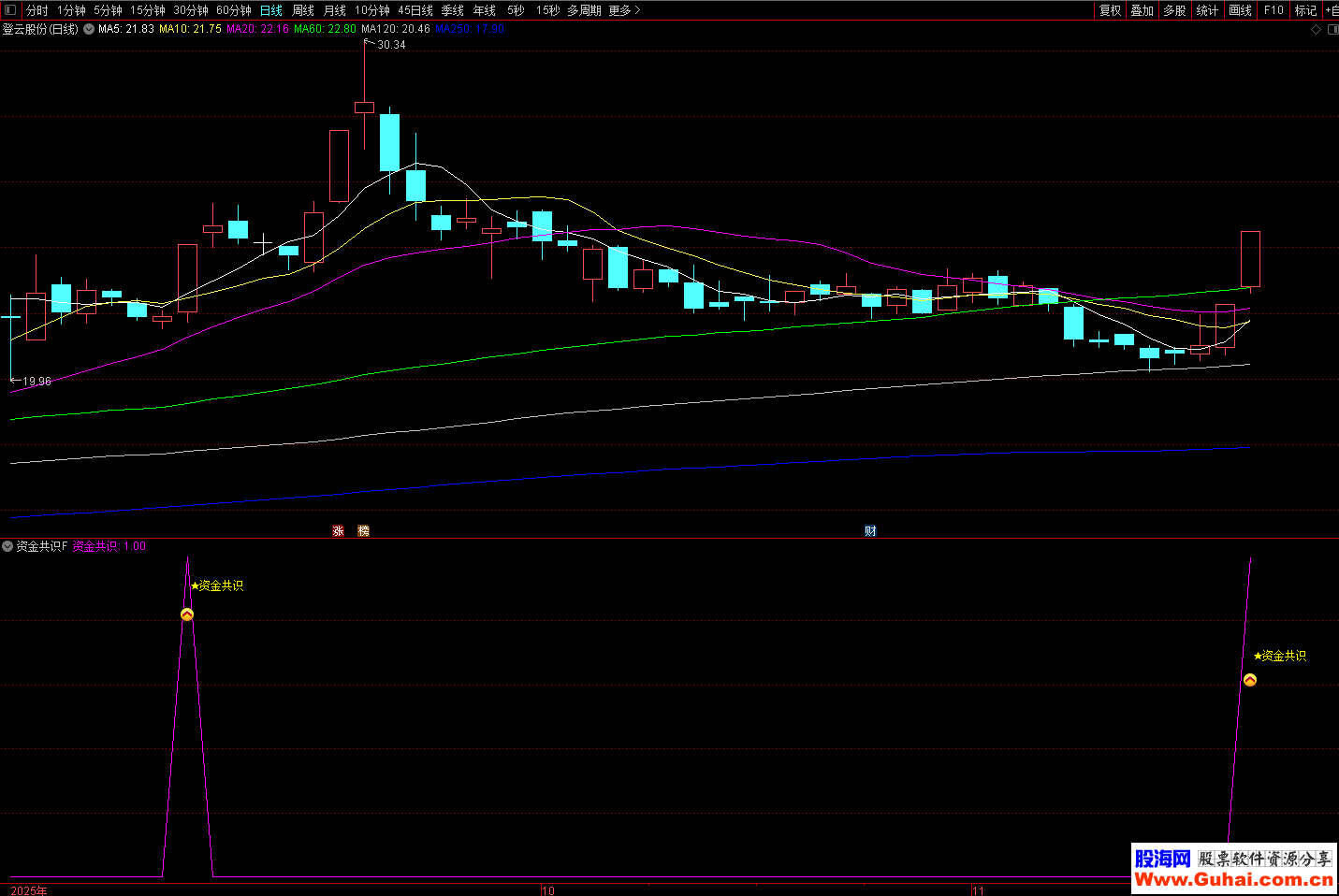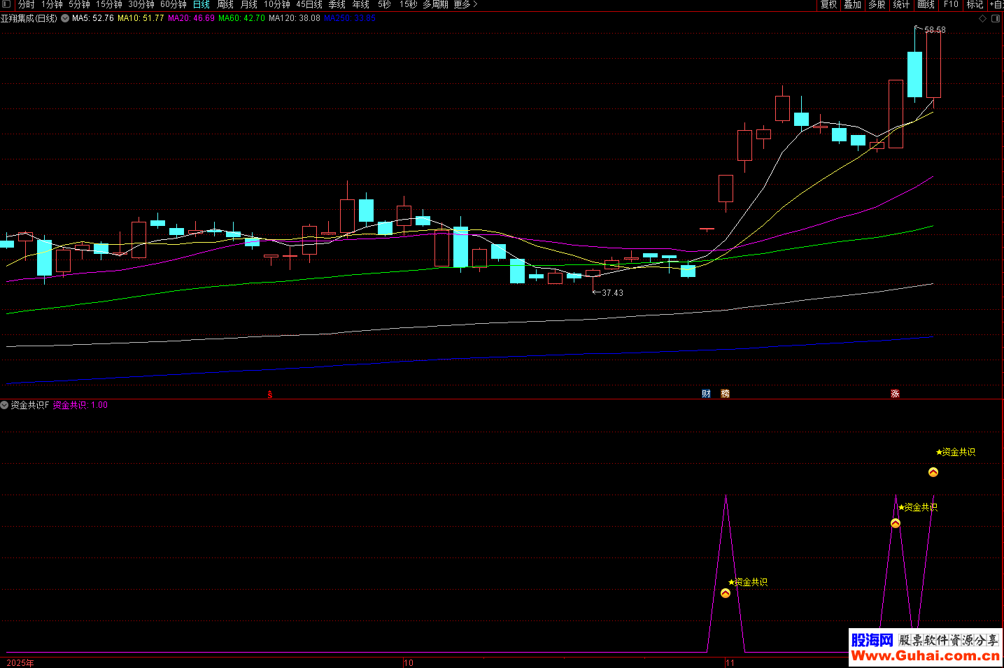 信号显示:当所有条件同时被满足时,该指标会在图表上绘制一个特殊的图标和“★资金共识”的文字标签,直观地标记出这个时点。