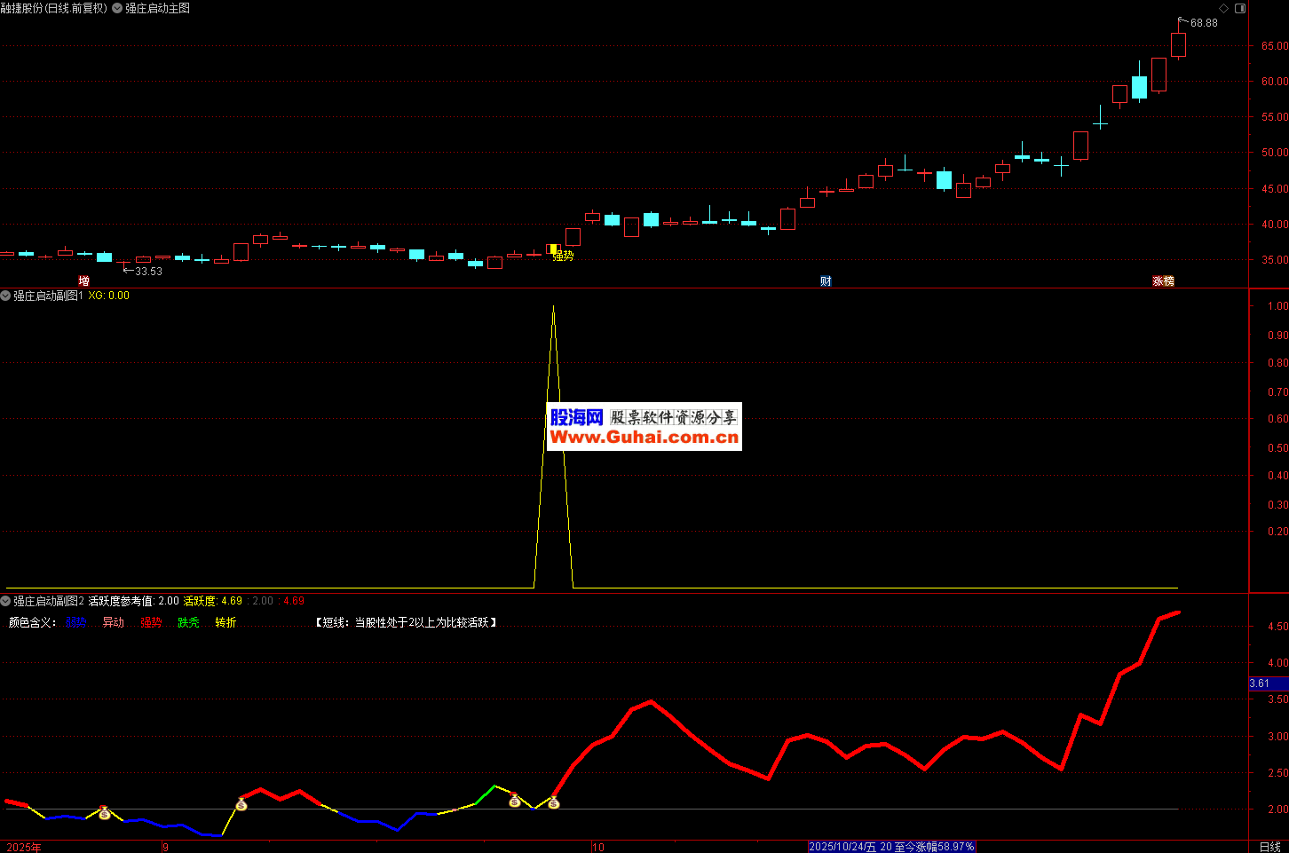 操作策略:当股票满足趋势指标转强、活跃度达标后,在首次出现连续三根阳线(非涨停)时考虑介入。
