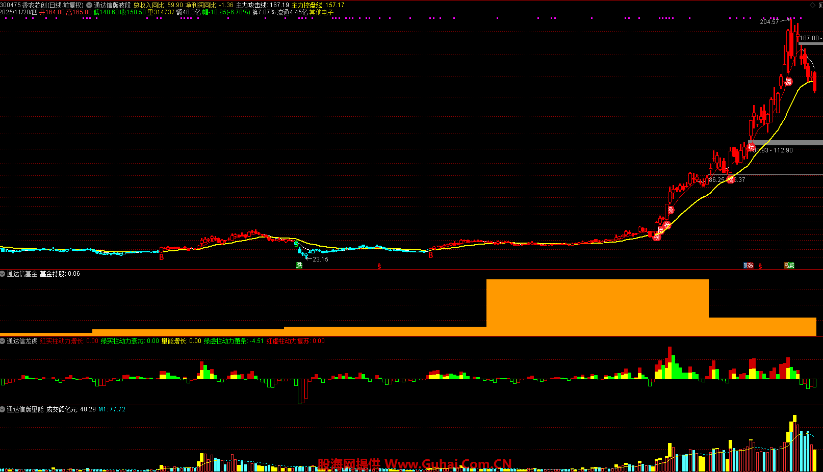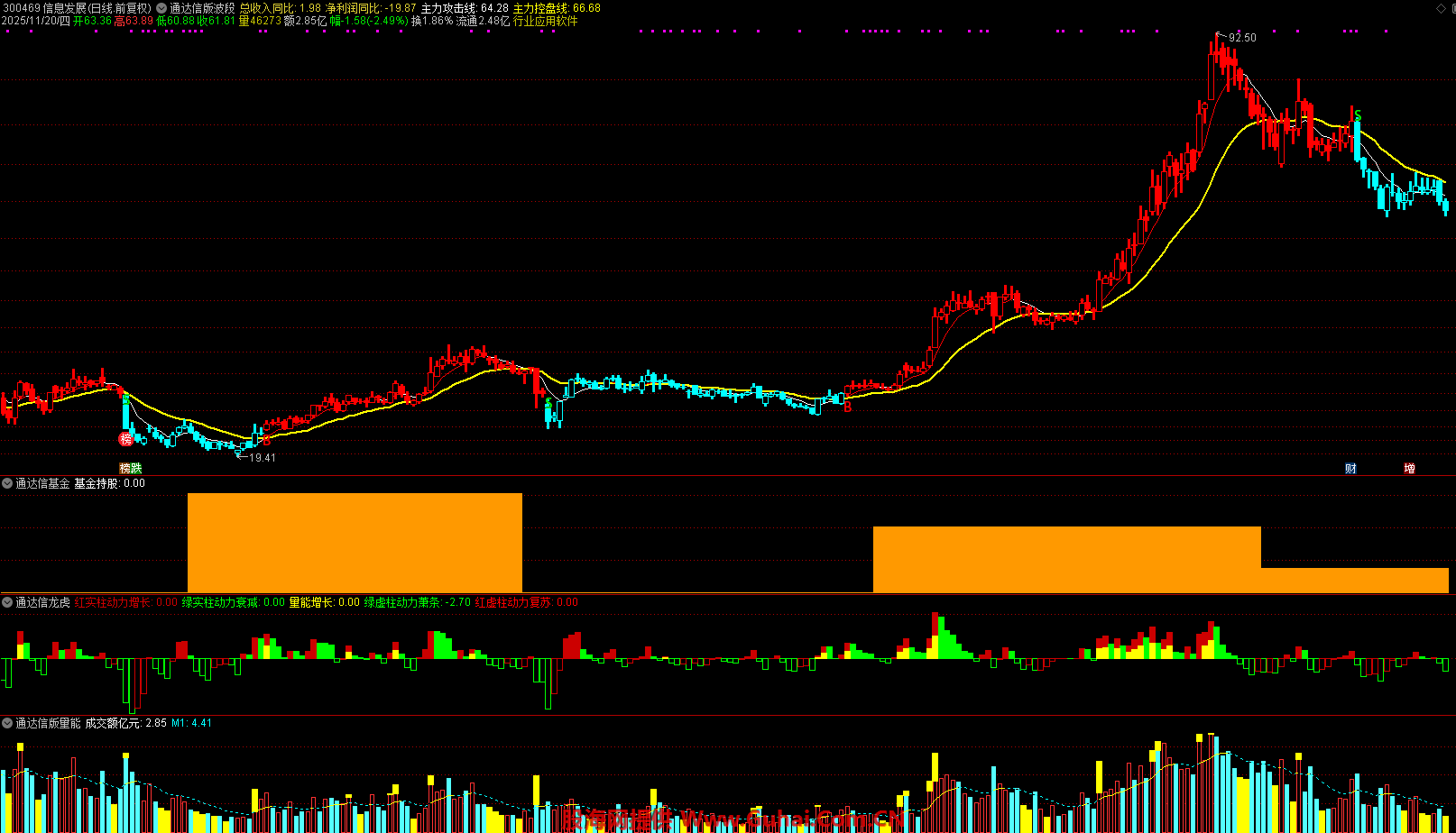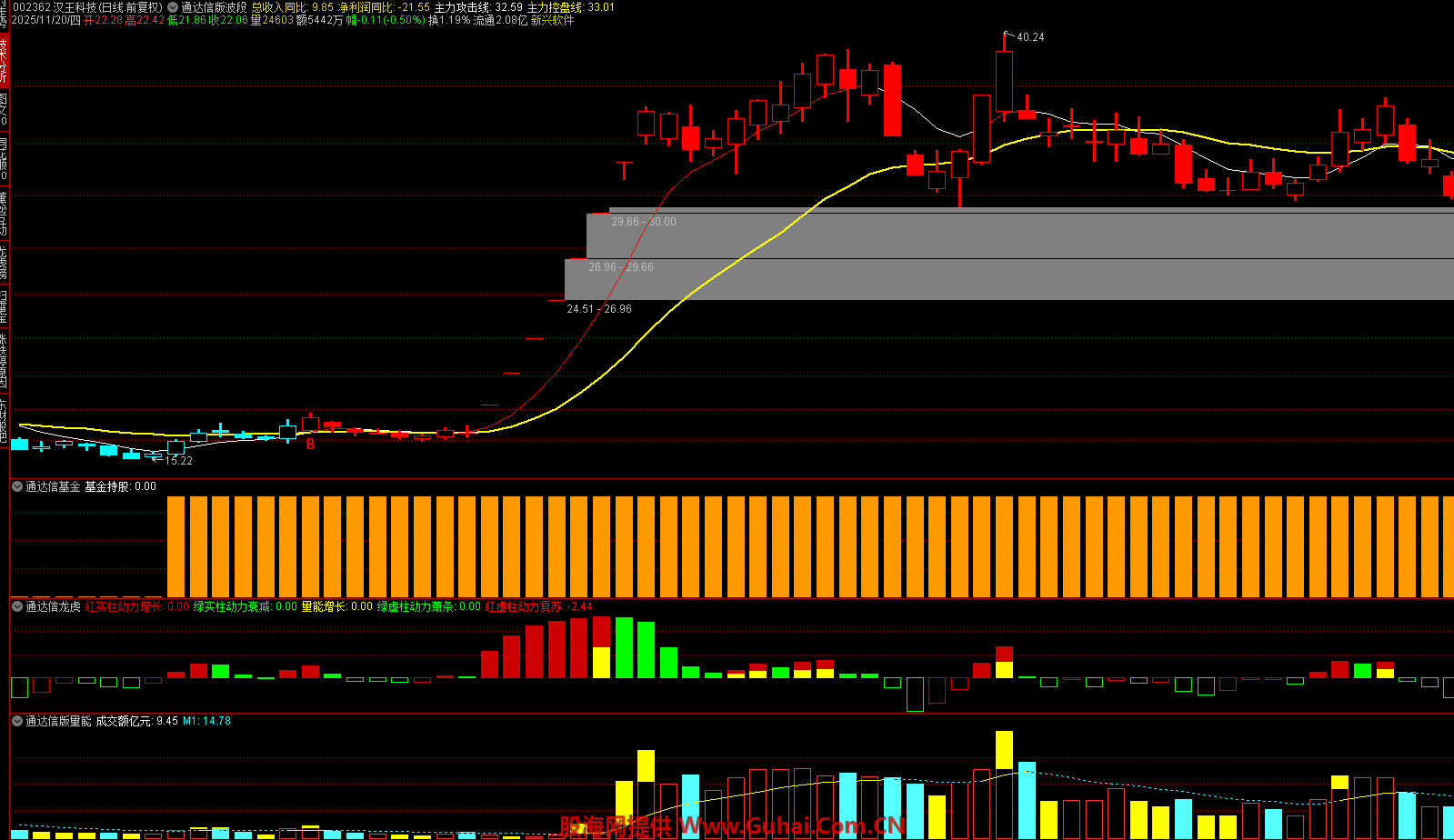 按照G多多指标仿写其大师版另一套指标,据说这套售价也是很贵的 ,有很多客户付费了几万也不给这一套。其中通达信基金副图和主图获取榜数据需要下载专业财务数据,否则无法完全显示,请知晓!