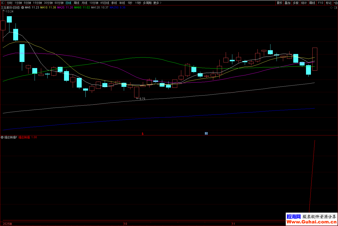通达信 强庄转强 1副1选股 适用于寻找短期内有较强上涨动能的个股,特别适合在震荡市或上升趋势中捕捉突破机会