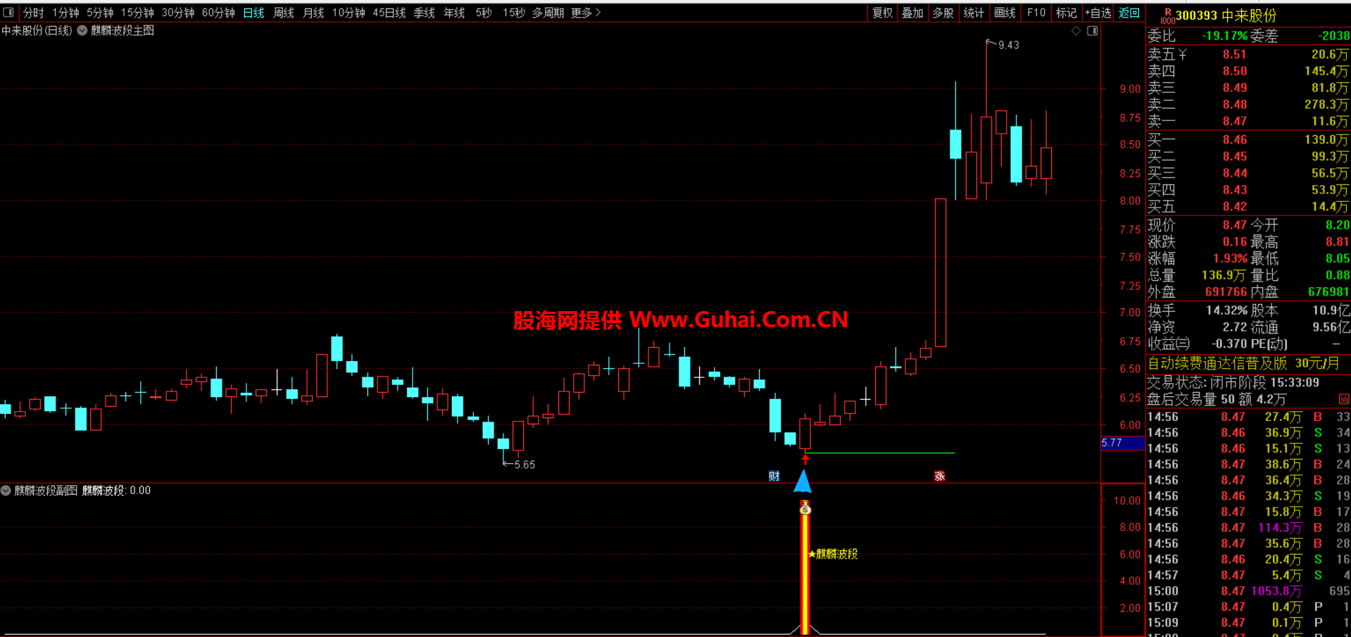 通达信麒麟波段短线主副图选股通达信指标 多条件反转信号系统信号少而精,专为捕捉短期强势反弹机会而设计源码无未来