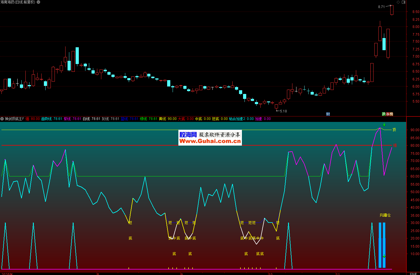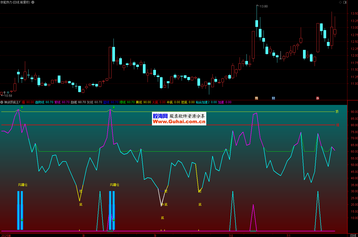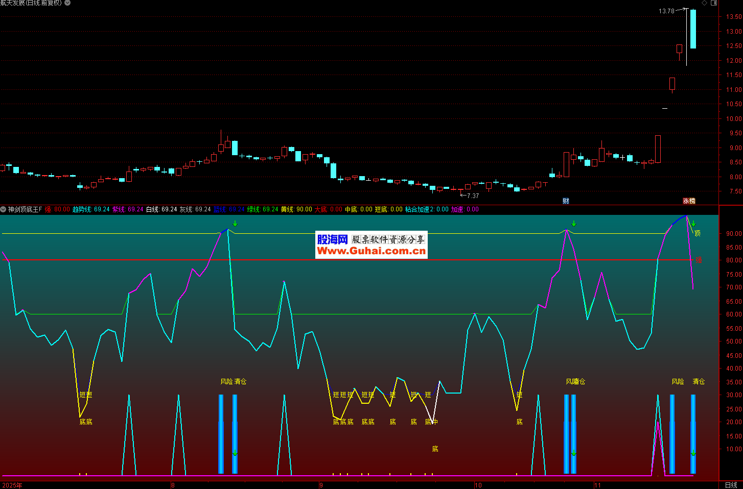 主要操作策略:在指标显示大底、中底、短底时考虑买入,当趋势线快速上升超过特定位置时视为加速上涨信号,而进入高风险区域并出现拐头时则提示卖出风险。