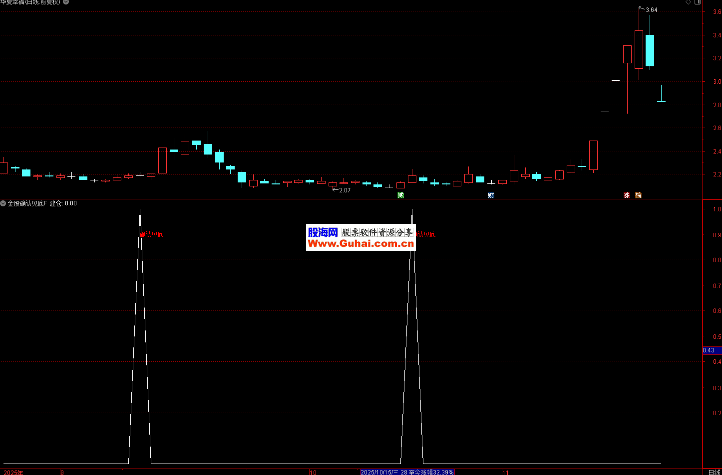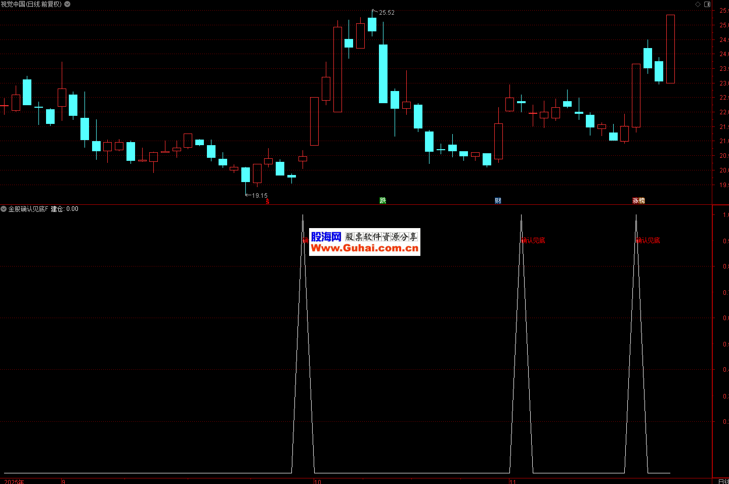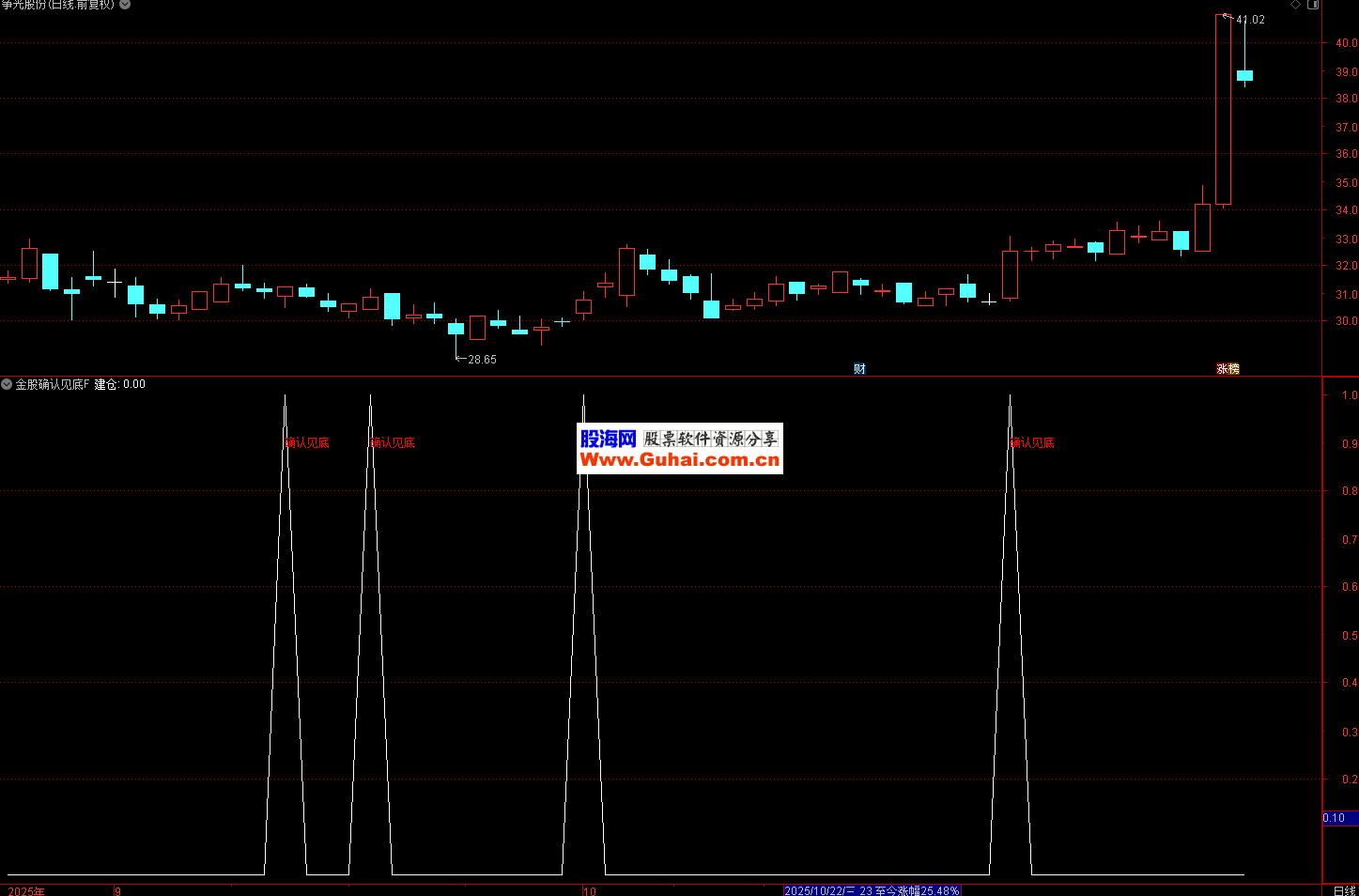 用于 A 股、港股等单只股票的短期底部判断,适合短线交易者(持仓 1-5 个交易日)。当股价经历一轮下跌后,出现 “确认见底” 红字信号时,可结合成交量(如放量)进一步验证,作为低吸建仓的辅助信号。