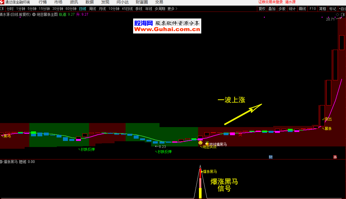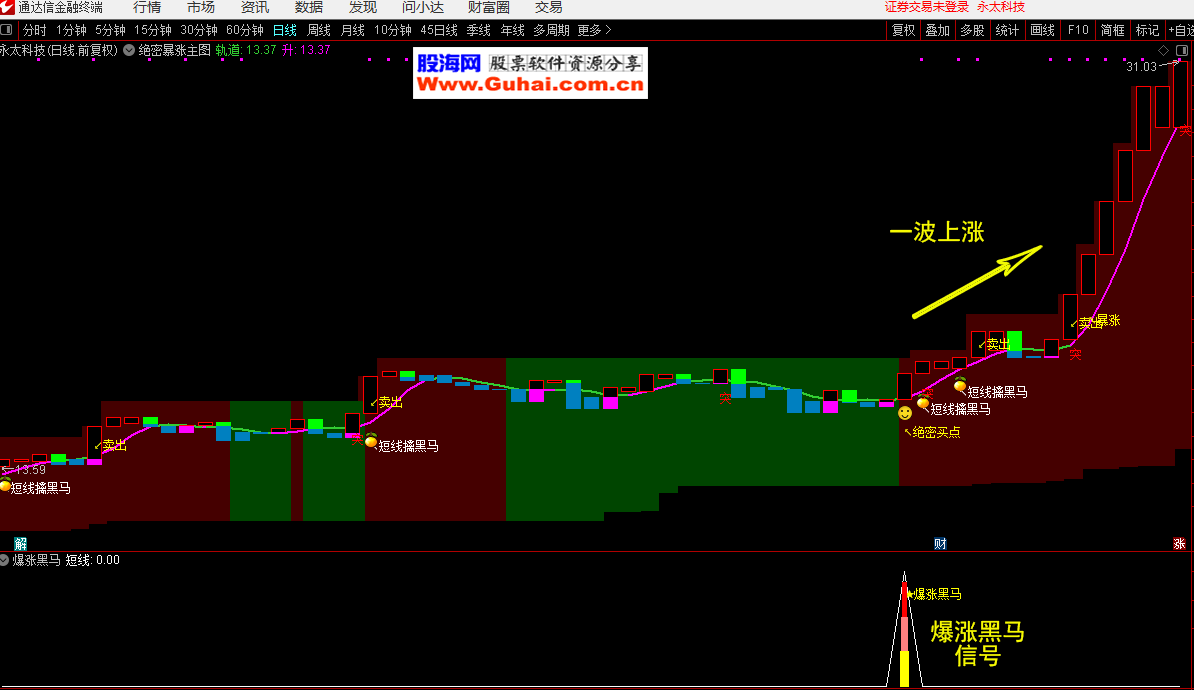 相关简介:通达信绝密爆涨主图,爆涨黑马副图公式,轻松跟上主力资金