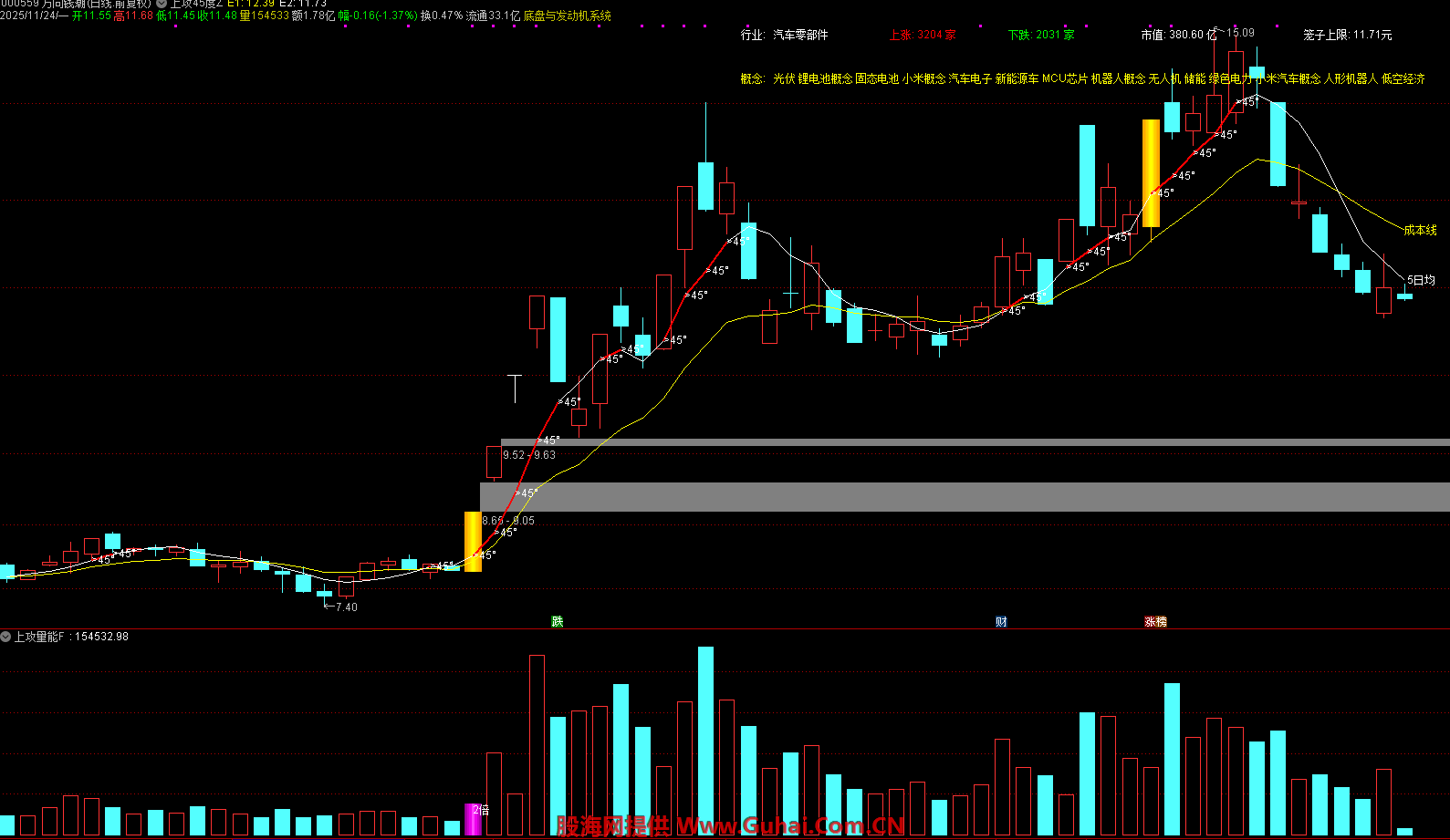 经市场验证,上涨角度超45度是趋势股启动关键信号。该模式尤其适用于捕捉翻倍大牛股,因趋势一旦形成,每次回踩均线都是加仓良机,需把握时机果断操作。5日线上穿成本线,就要关注了