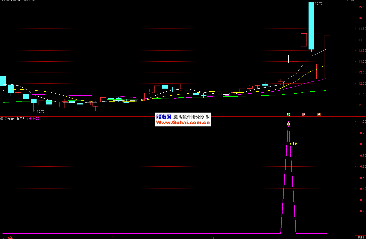 策略核心是结合三种信号:成交量显著放大、主力资金完成吸筹、MACD指标转强。当股价放量突破前高且处于强势区域时,系统发出"捉妖"提示,视为短期强势启动点,可及时跟进。