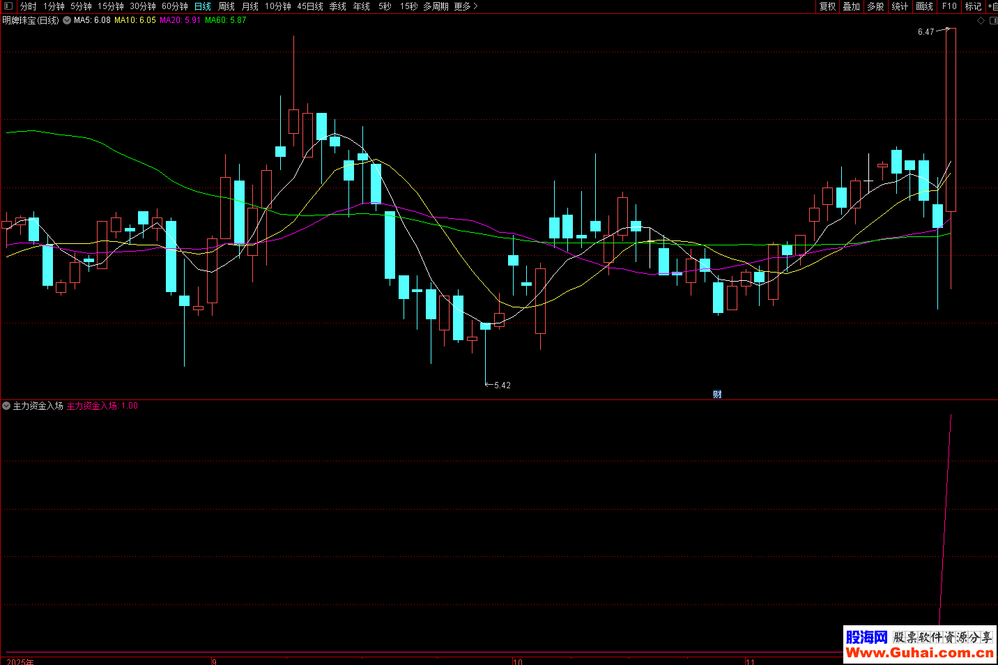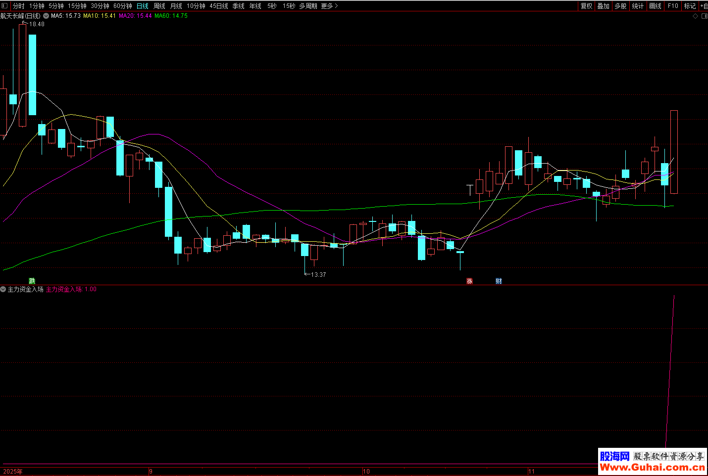 通达信 主力资金入场 1副1选股 用于识别主力资金入场时的共振买点信号