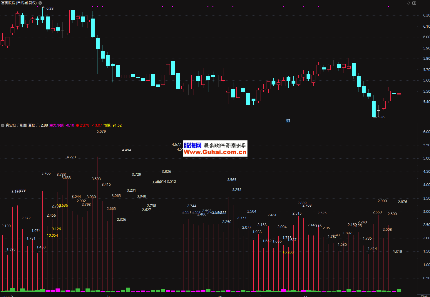 二、通达信〖真实换手〗副图指标 主力净额 实际换手率筛选“真实活跃股” 源码