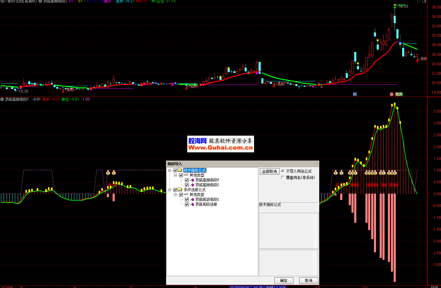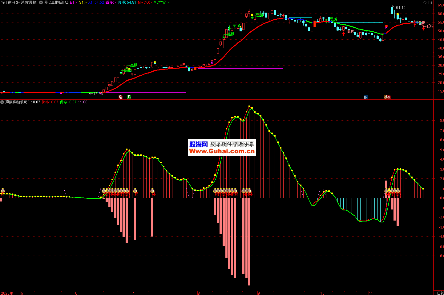 2.验证信号有效性:①确认A1为红色粗曲线(多头趋势延续);②当日成交量≥5日平均成交量(放量确认);③股价未跌破EMA13(短期支撑有效);