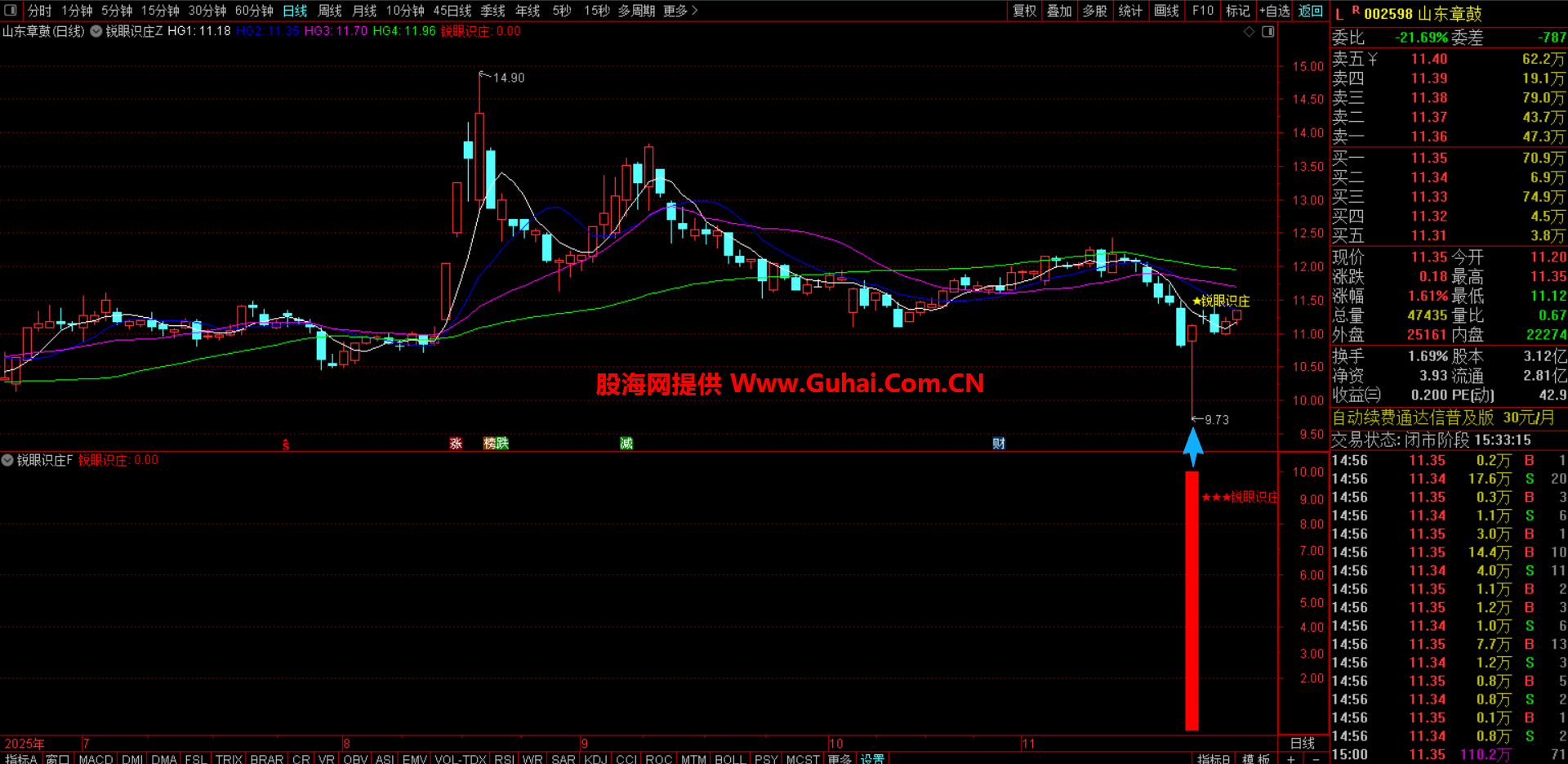 注意的是:趋势刚开始向下的不要选,“锐眼识庄”信号出现可以逢低低吸,跌破信号的支撑位及时止损!