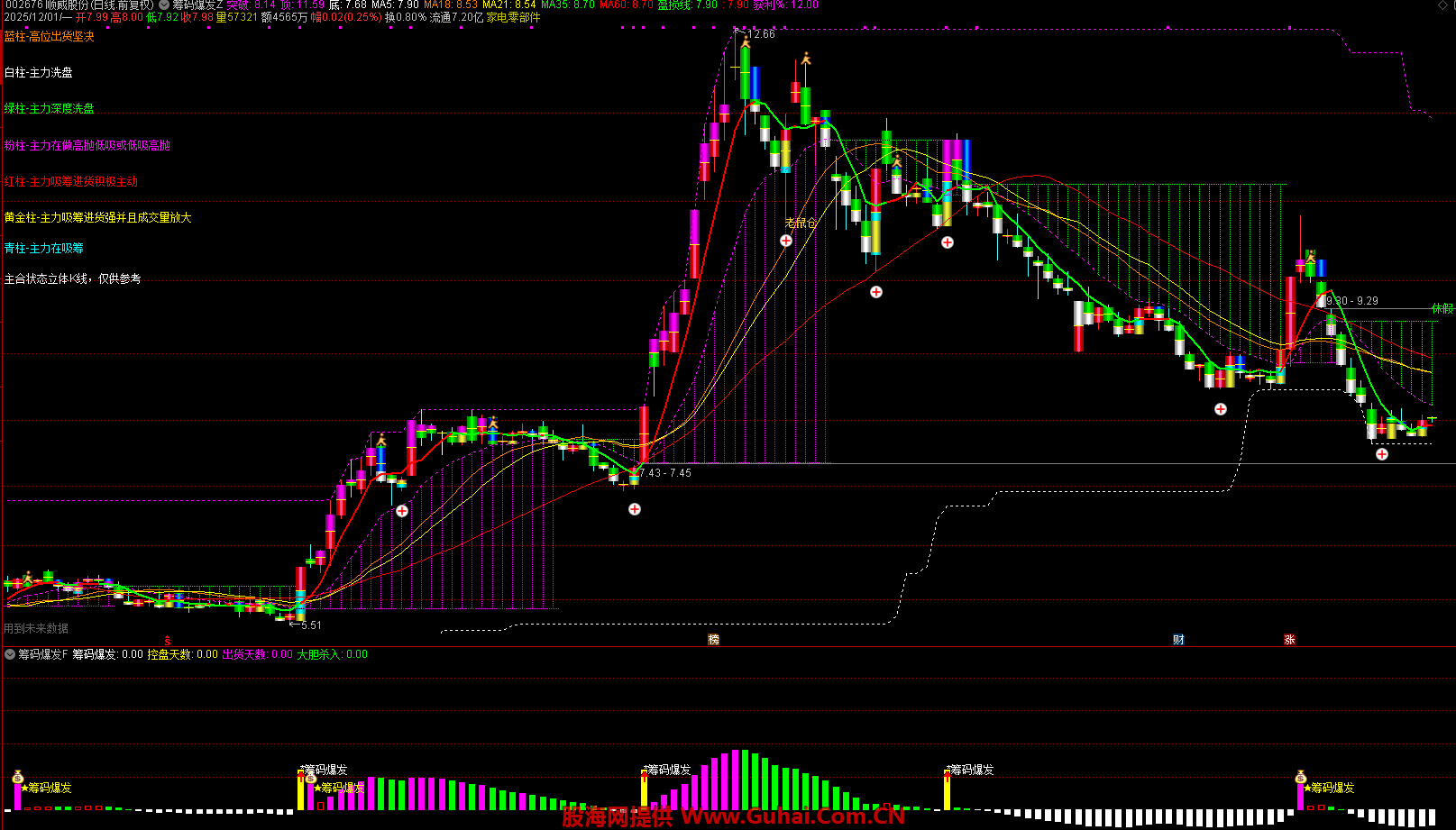 2. 激进买点:出现黄色柱体"*筹码爆发"信号,代表股价被压制后单日涨幅超8.5%,短线爆发力极强