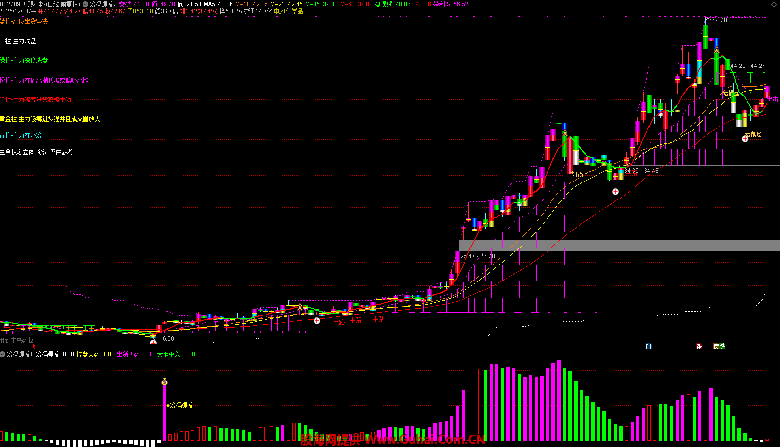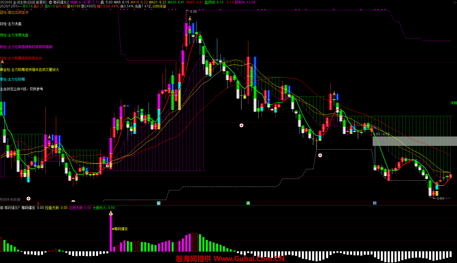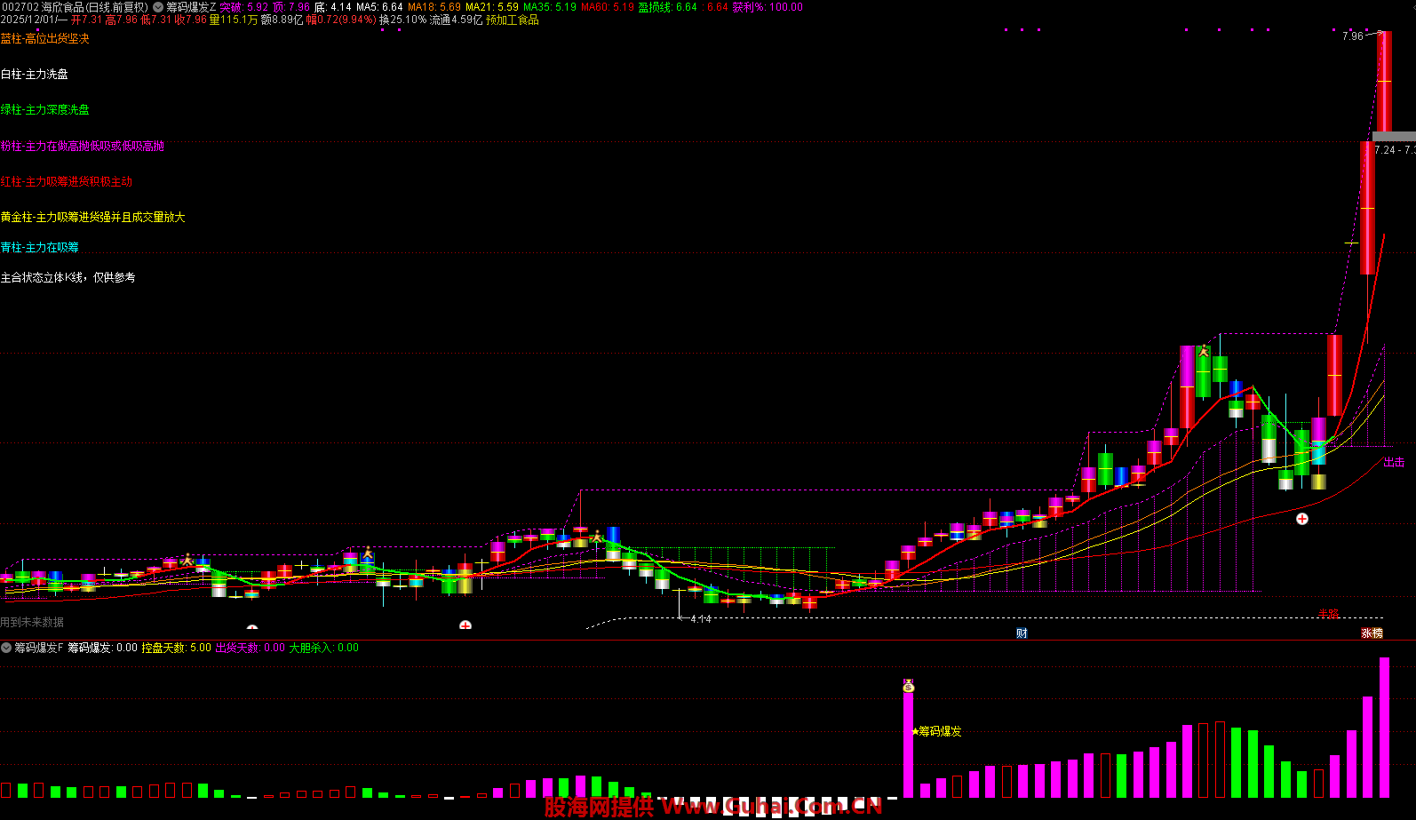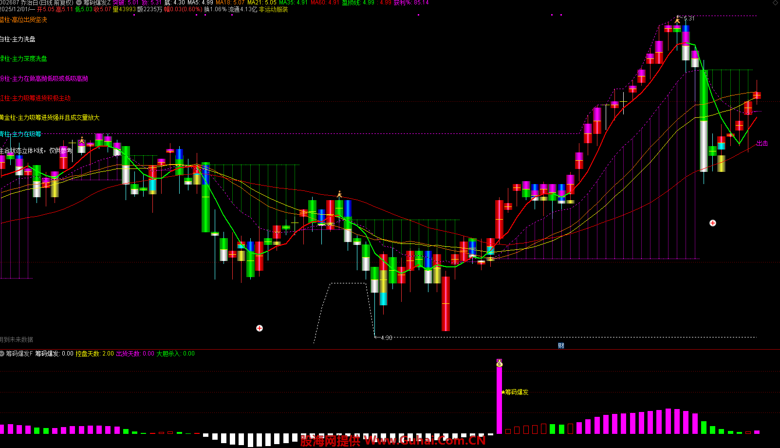 4. 风险预警:绿色柱体出现提示主力出货,粉色区域代表高度控盘需警惕高位风险