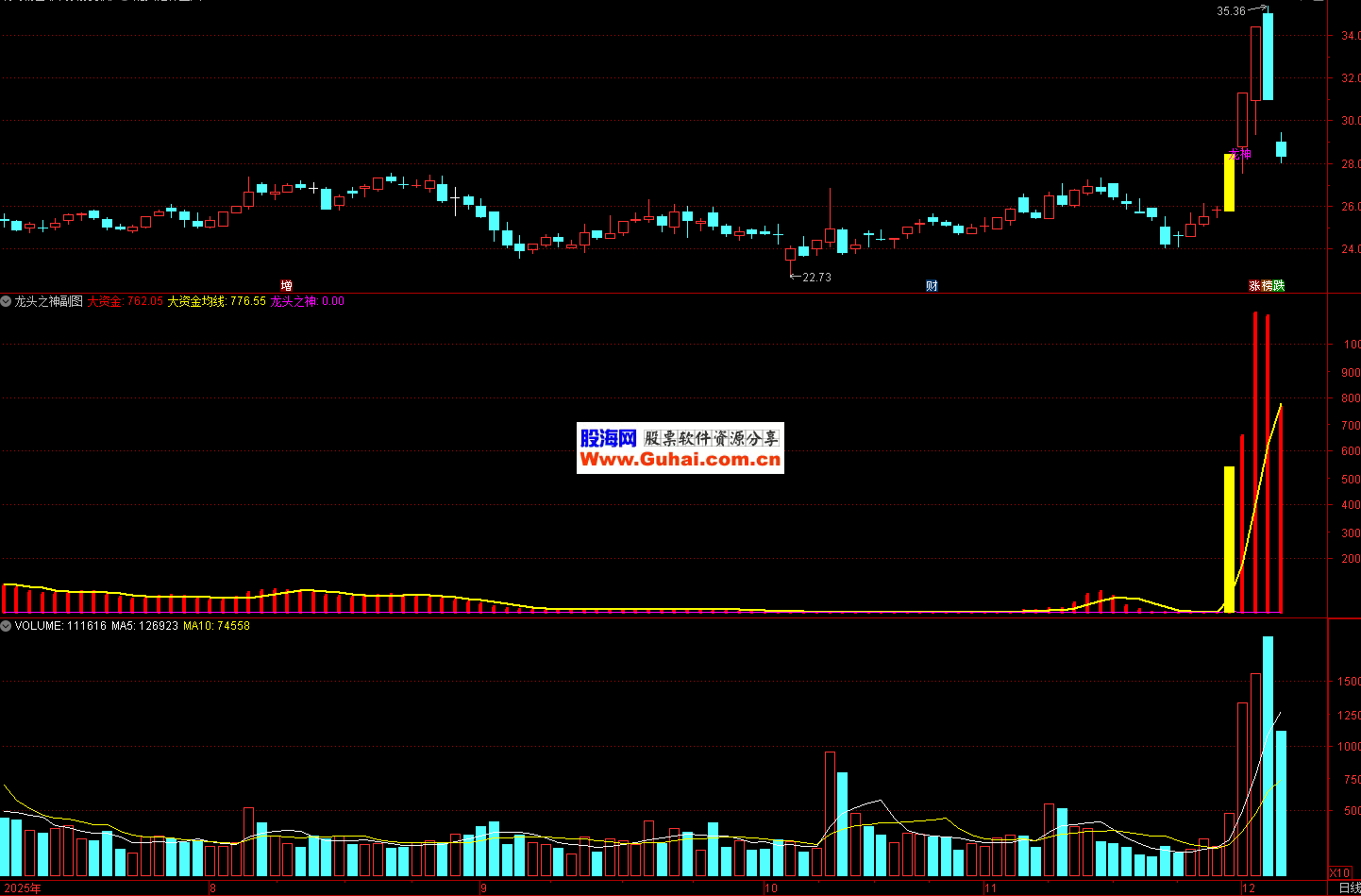 龙头之神,包含副图和选股指标,源码送出,该指标重点在于选择强势个股,在选股的时候,选择刚站上60均线首次启动或选择刚突破前小山峰的启动的最佳。