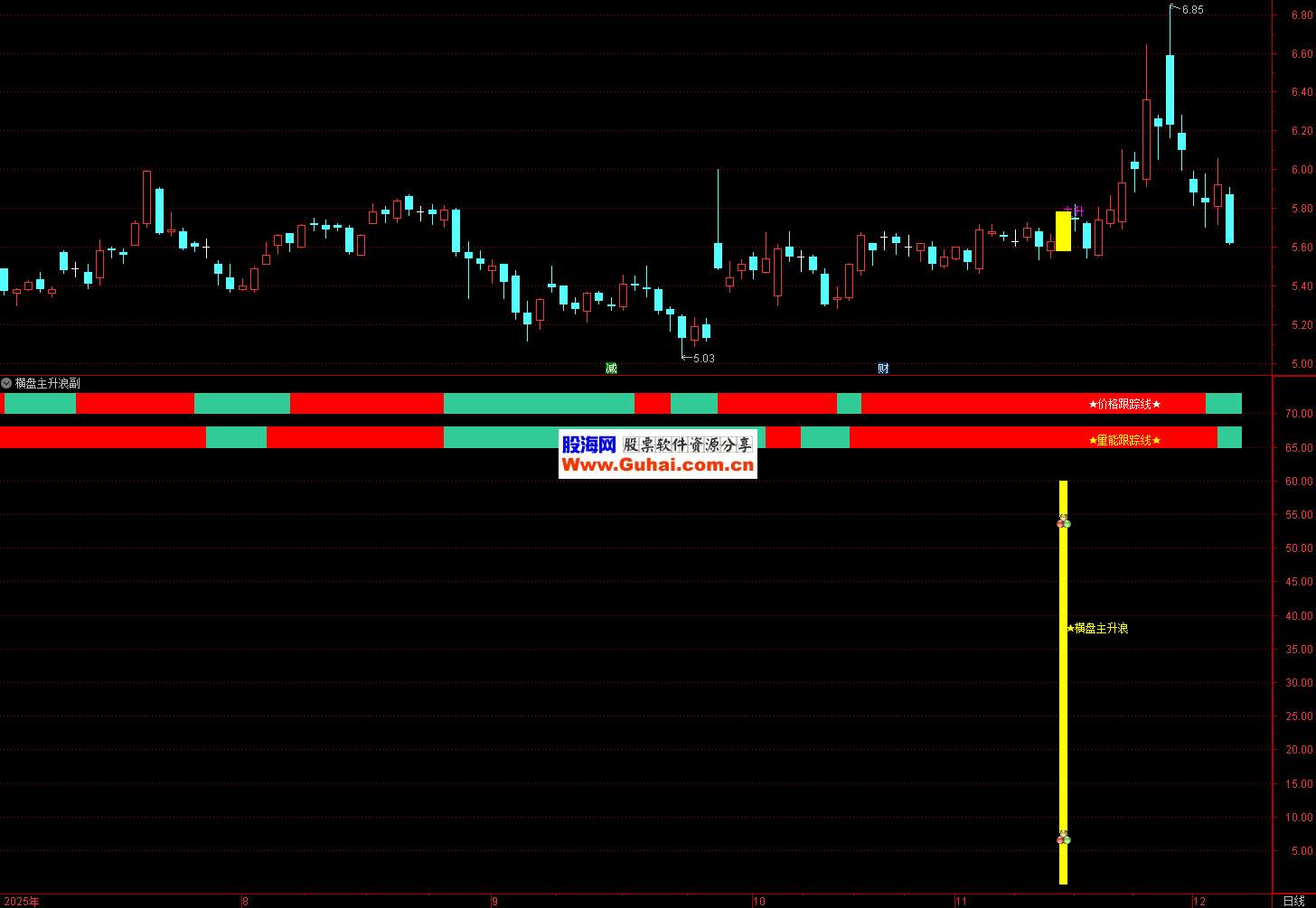 辅助柱线变色:65-68或70-73区间柱线由红转绿,且当日成交量放大(说明资金离场导致趋势弱化)