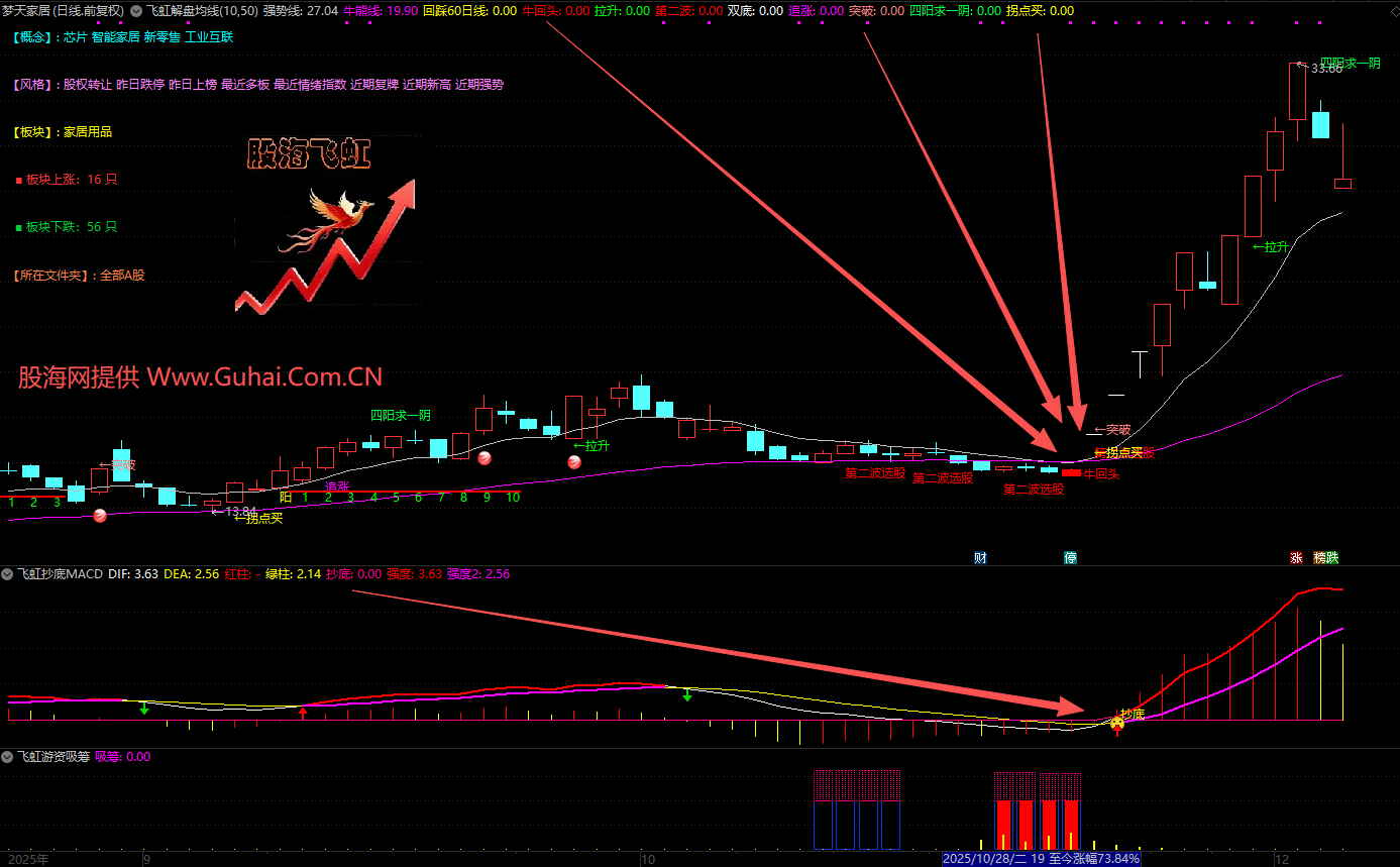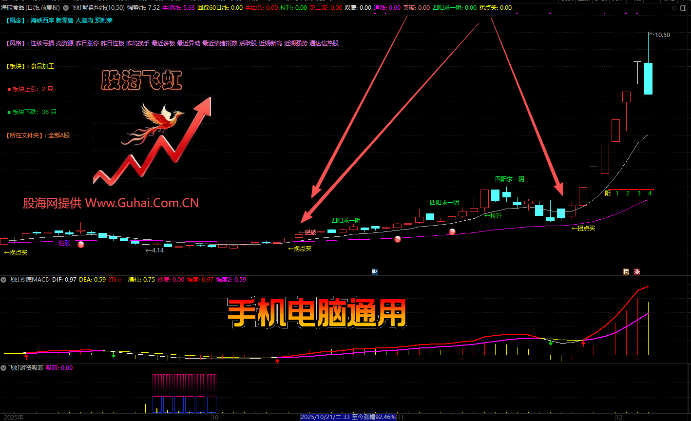 通达信【飞虹实战操盘】强化版、1主2副+9个选股、信号全面、实战性强,用于中短线交易决策。